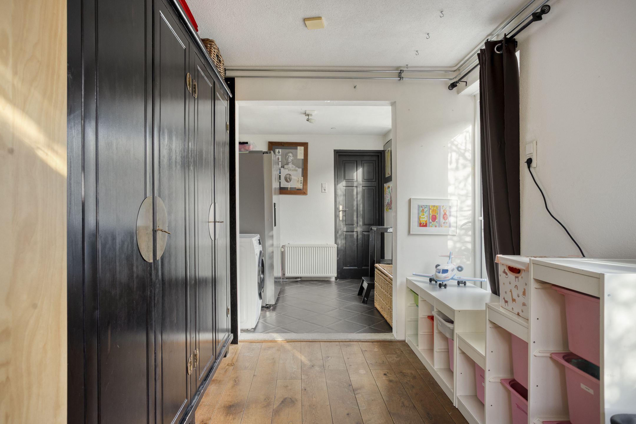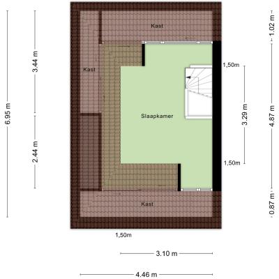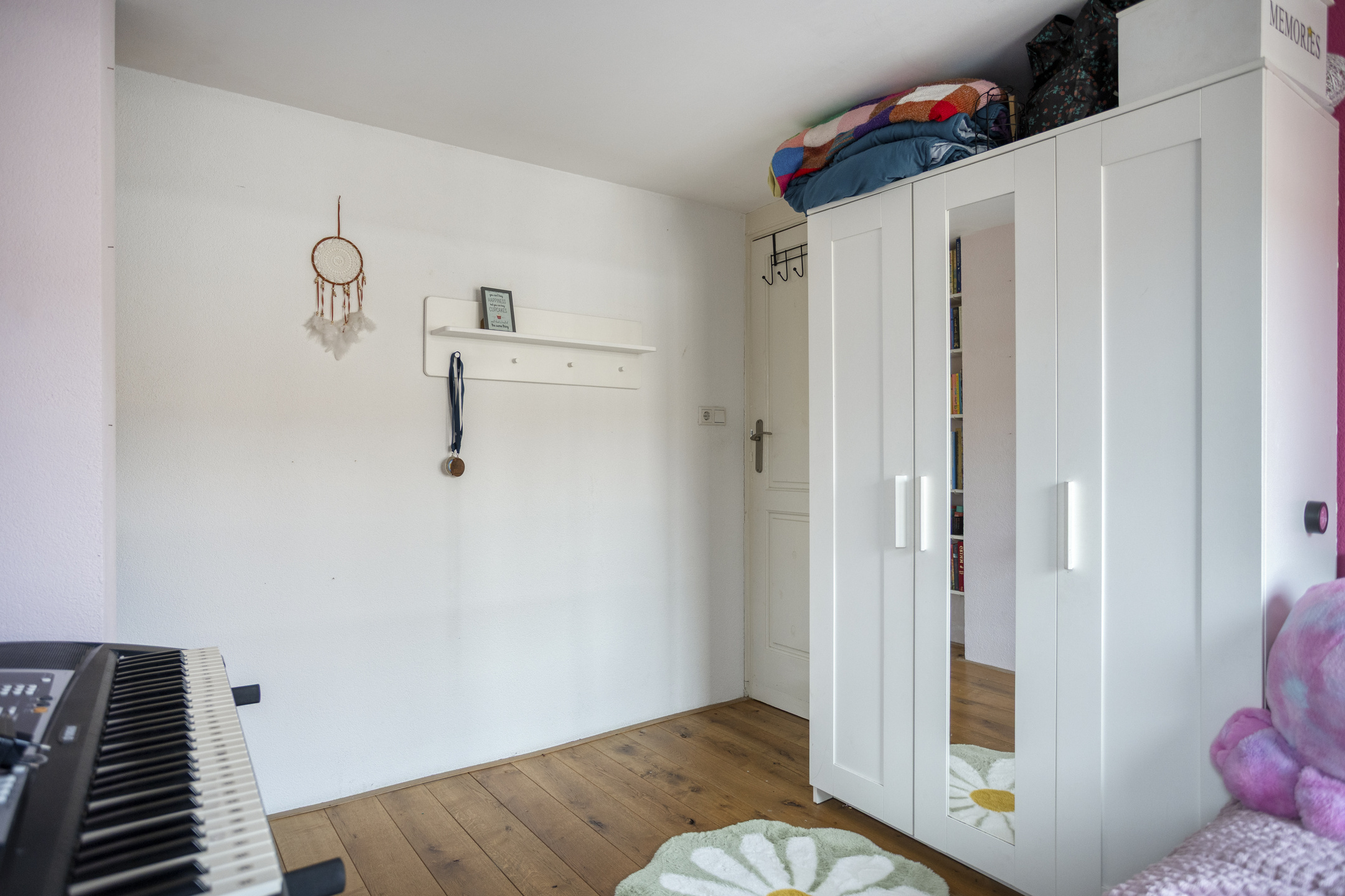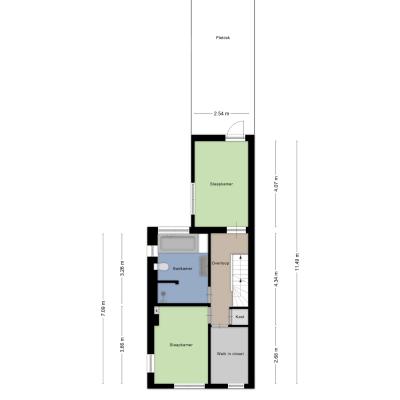 Een vaste trap brengt u naar de tweede verdieping. Dankzij de dakkapel aan de voorzijde en het raam aan de achterzijde is dit een fijne, open en lichte ruimte die zich uitstekend leent als volwaardige slaap-, werk- of tienerkamer. Onder de schuine kap is praktische opbergruimte aanwezig.