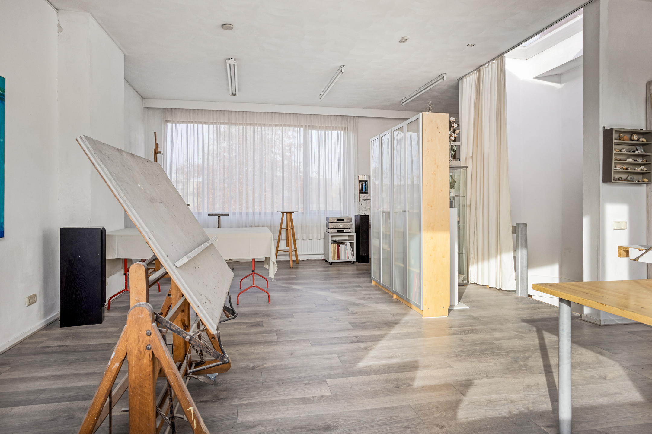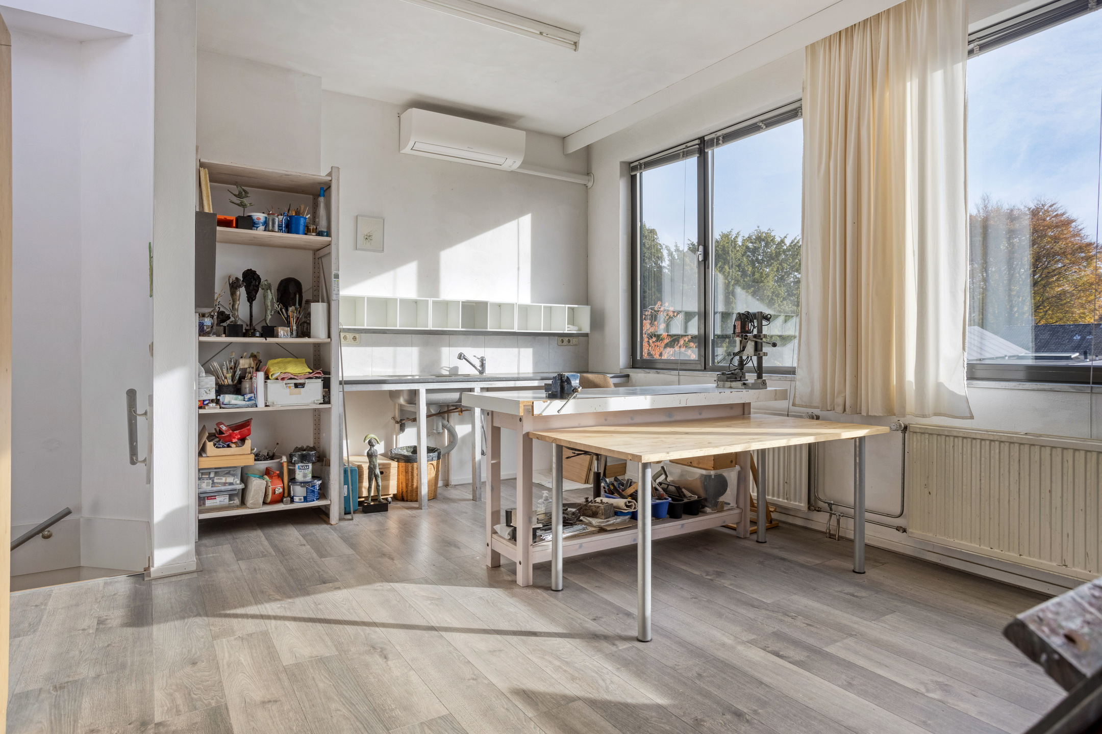 Tweede verdieping – flexibel en verrassend ruim En dan de tweede verdieping – echt een gamechanger. Deze opbouw is nu ingericht als multifunctionele ruimte en atelier, maar je kunt hier alle kanten op. Werkplek, studio, extra slaapkamers, speelzolder – noem het maar. Dankzij de eenvoudige keukenopstelling (spoelbak met afzetblad) is dit ook een perfecte chill- of gameruimte voor oudere kids. Veel licht, airco en een strakke afwerking maken dit een plek waar je graag bent.