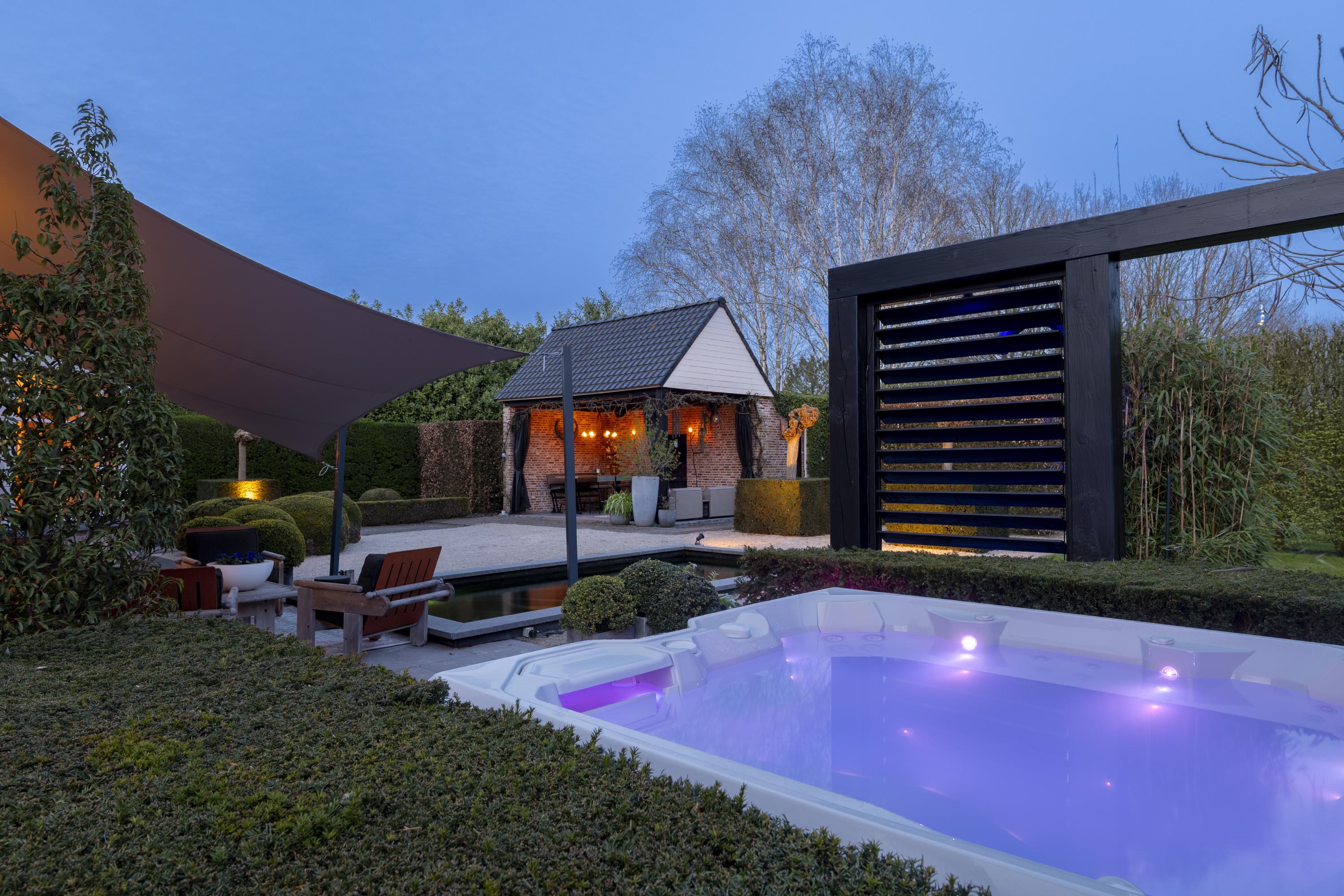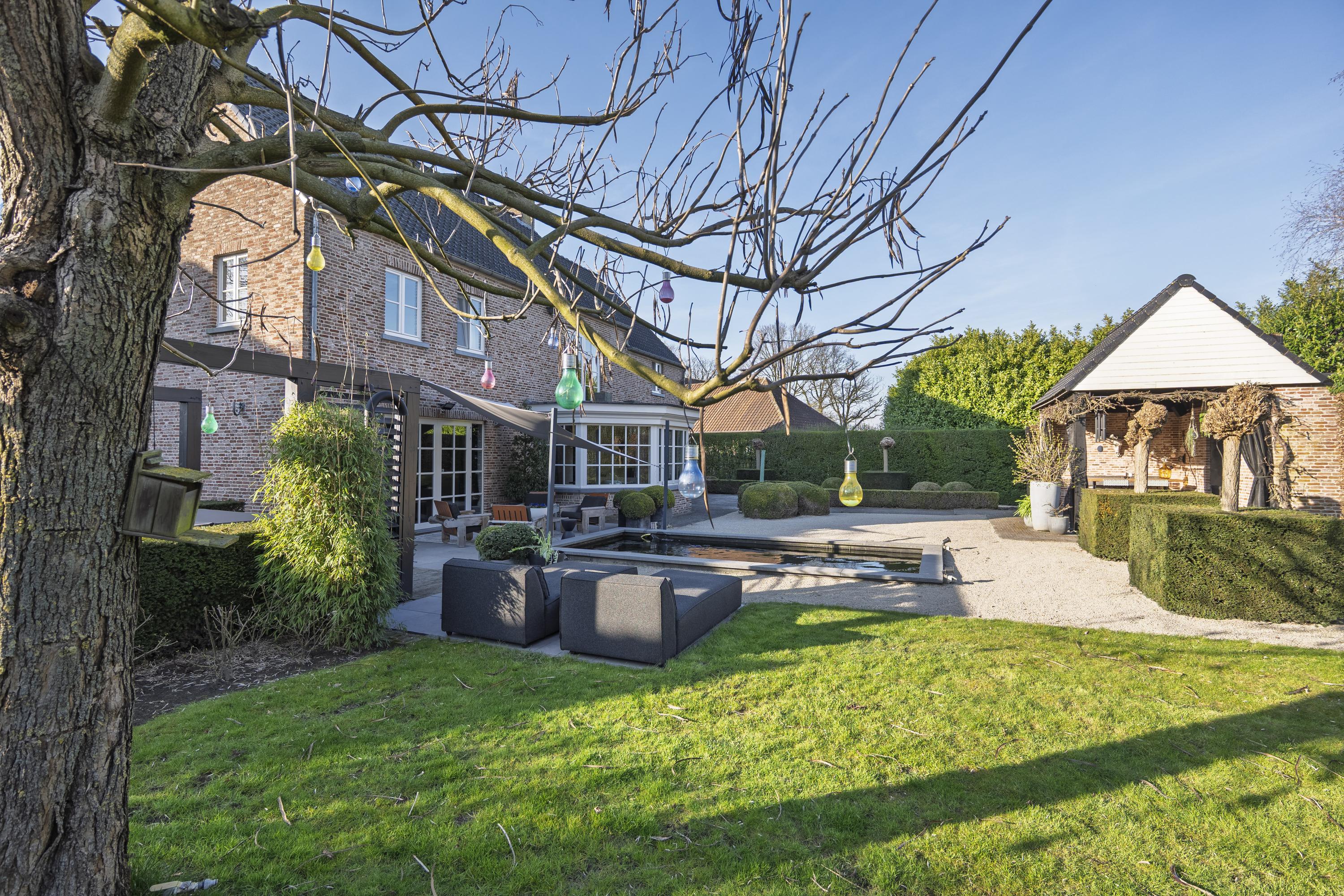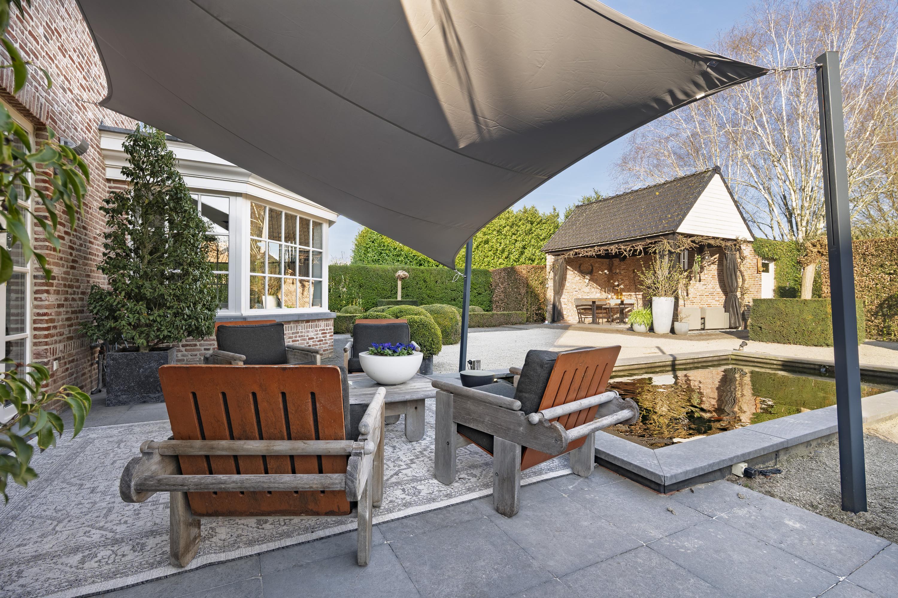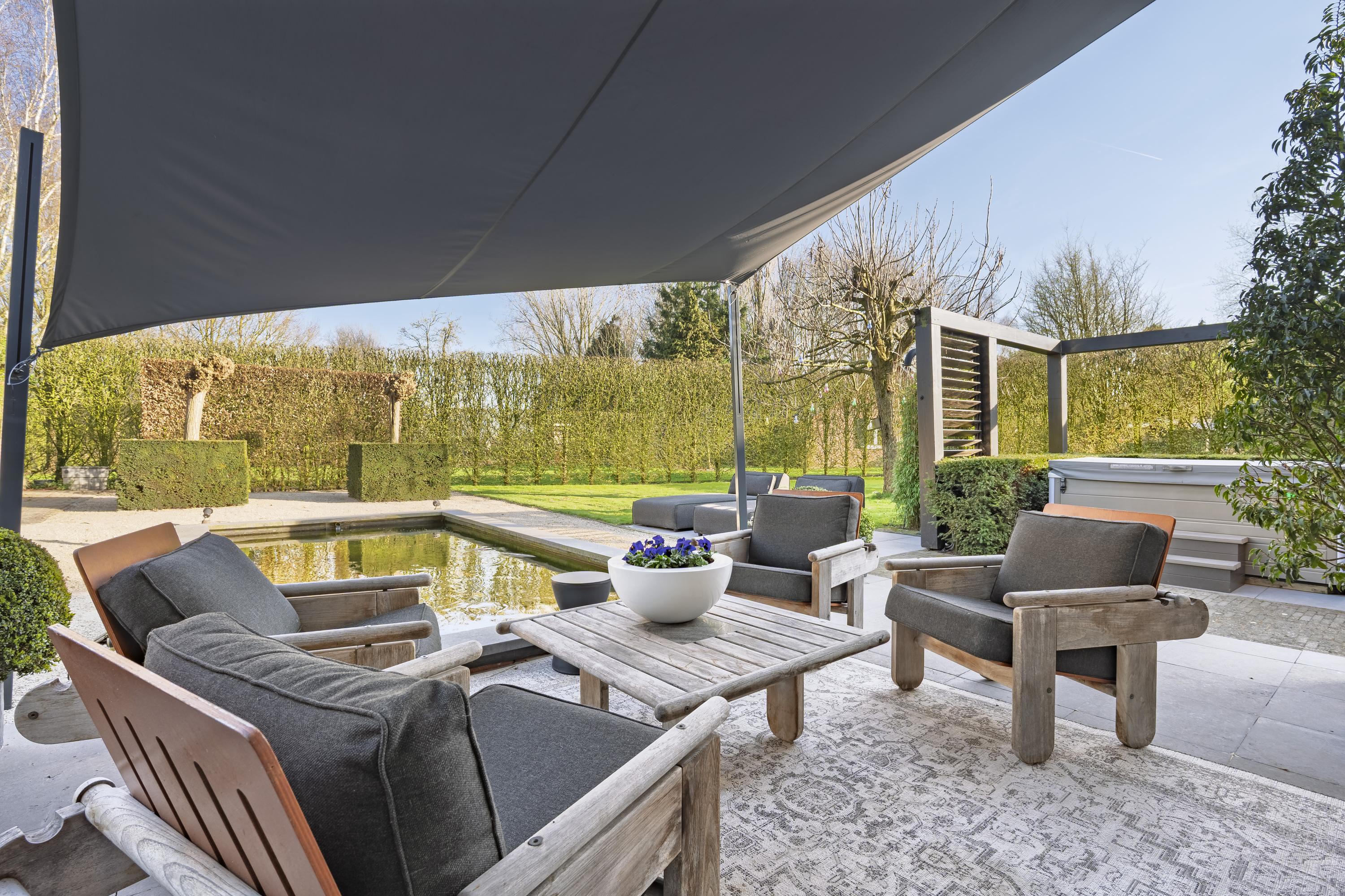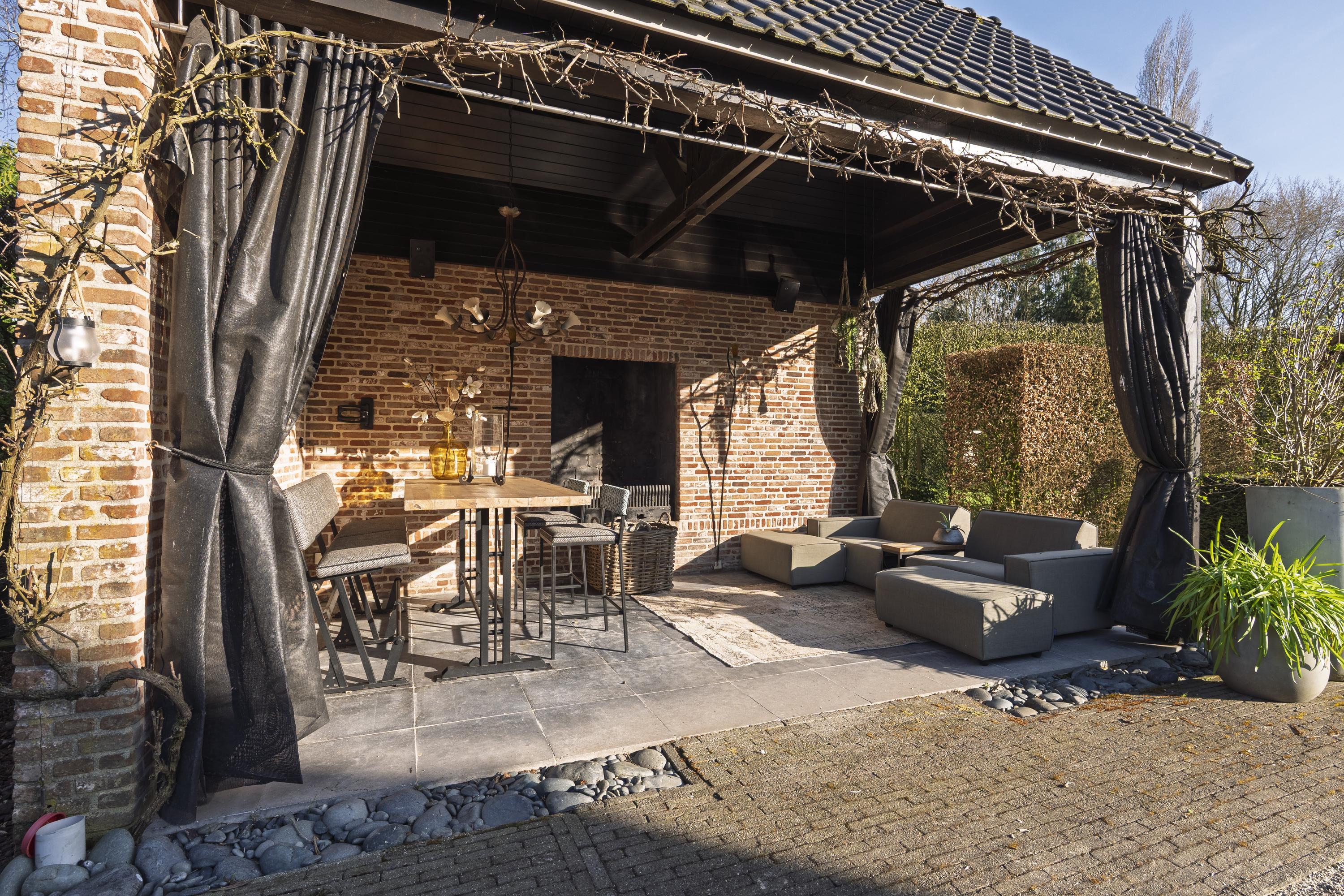 De fraai aangelegde tuin biedt optimale privacy en is een waar verlengstuk van de woning. U geniet hier van meerdere terrassen en een sfeervolle overkapping met buitenhaard – perfect voor lange avonden in alle seizoenen. Aansluitend bevindt zich een praktische schuur.
