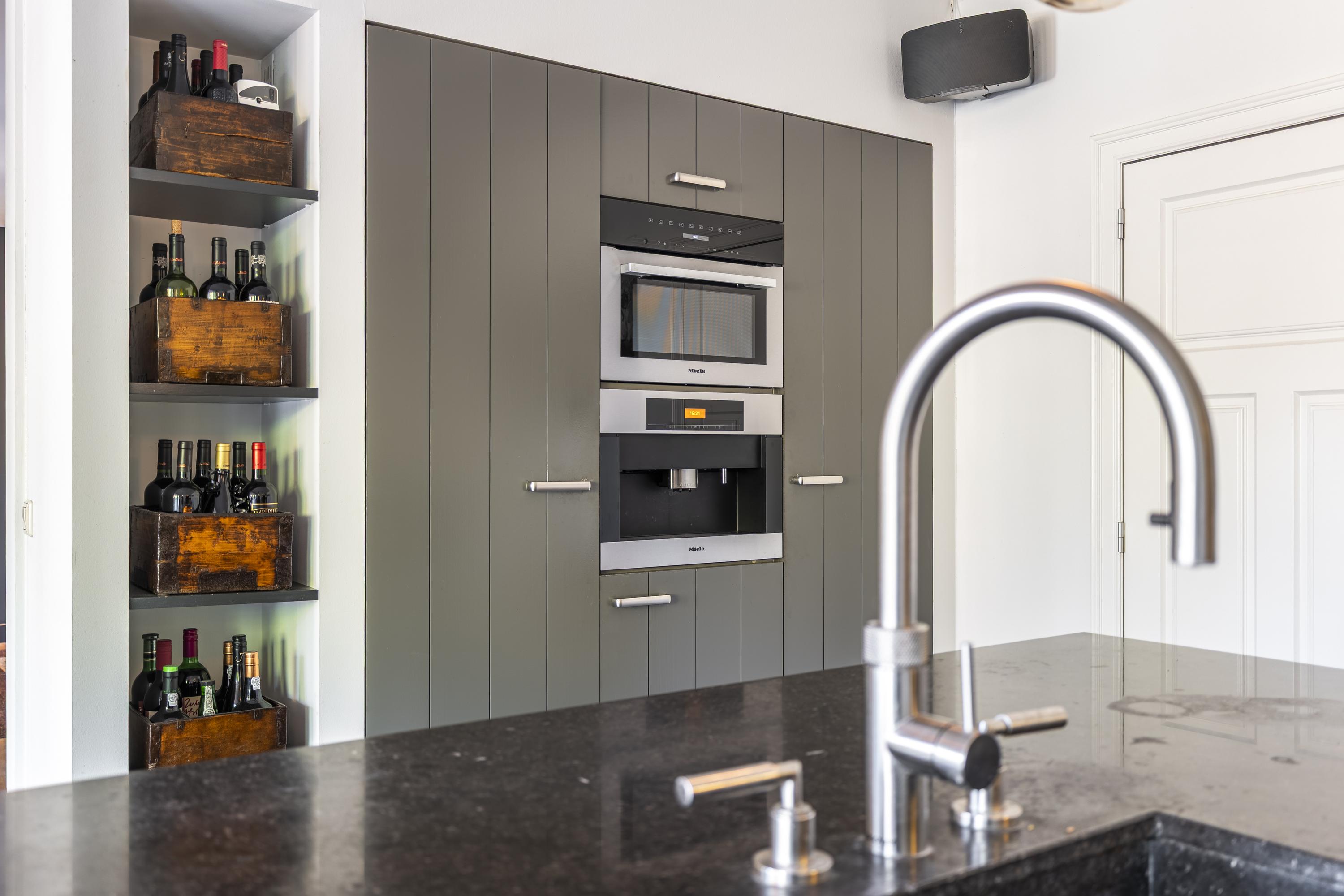 De royale woonkeuken met kookeiland is voorzien van kwalitatieve inbouwapparatuur en vormt de perfecte plek voor gezellige momenten met familie en vrienden. Aan de achterzijde van de woning vindt u de praktische bijkeuken met aansluitingen voor wasapparatuur, een extra kantoorruimte en toegang tot de dubbele inpandige garage met automatische poorten.