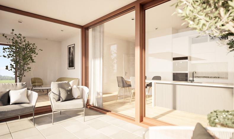 In elke woning vind je een individuele installatie met integrale vloerverwarming aangestuurd door een warmtewisselaar en zonnepanelen. Dankzij de vloerverwarming, die per ruimte kan ingesteld worden, voelt de temperatuur altijd comfortabel aan. Vloerverwarming is niet alleen heel aangenaam voor je voeten, het verbruikt ook minder energie dan het klassieke radiatorensysteem. Een bijkomend voordeel is dat je woning niet ontsierd wordt door radiatoren. Alleen in de badkamer zorgt een elektrische handdoekradiator voor extra warmte en comfort in het tussenseizoen.