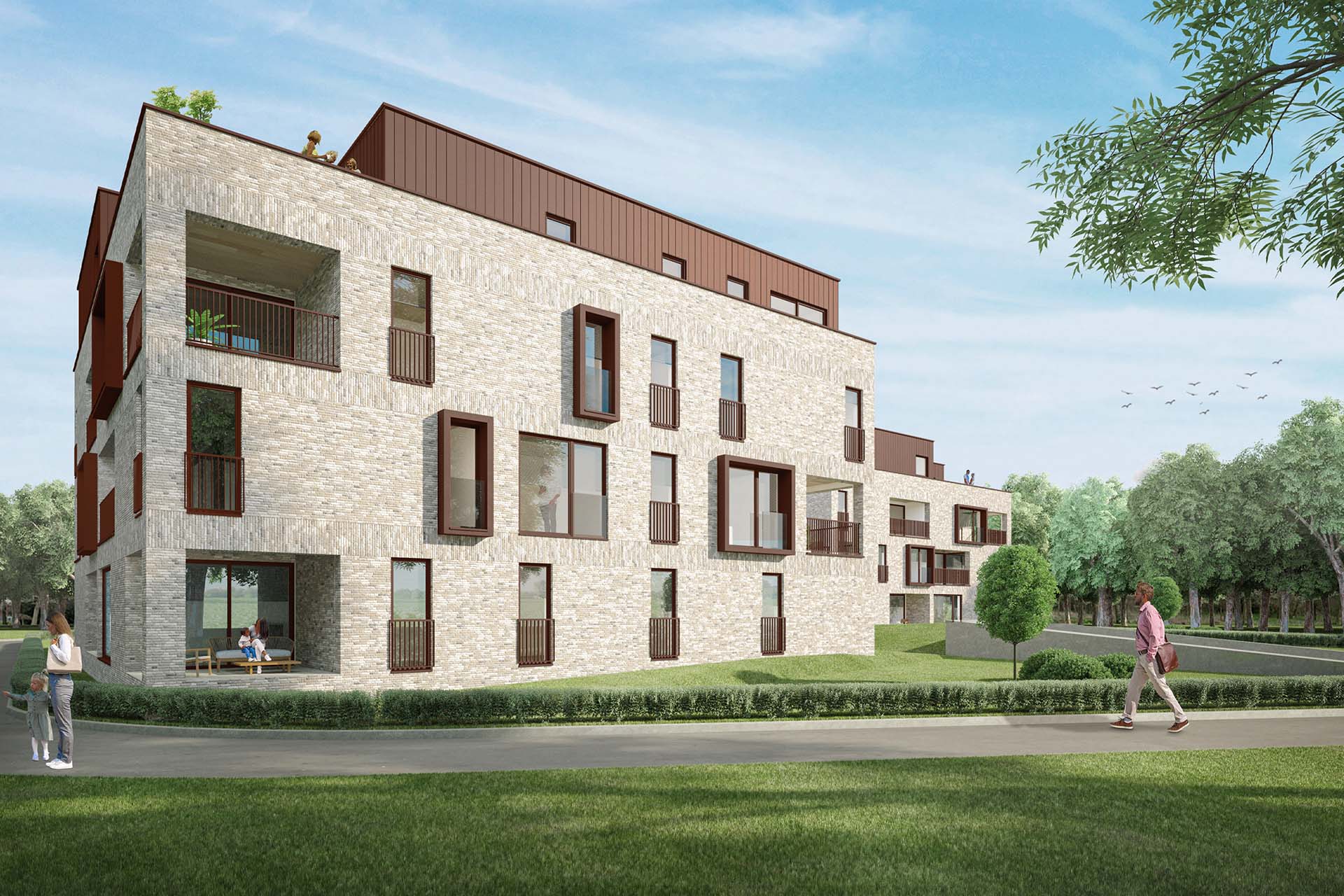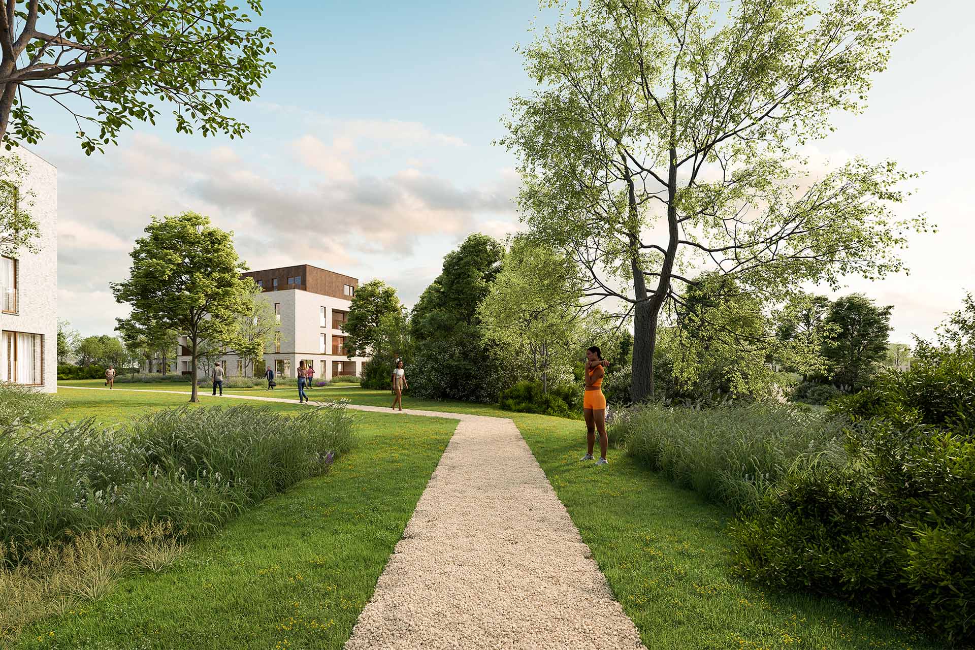 De gebouwen hebben maximaal vier bouwlagen. Daardoor zijn het aantal buren beperkt en geniet je des te meer van weidse zichten, rust en ruimte. De woningen voldoen aan alle moderne eisen qua isolatie en akoestiek.