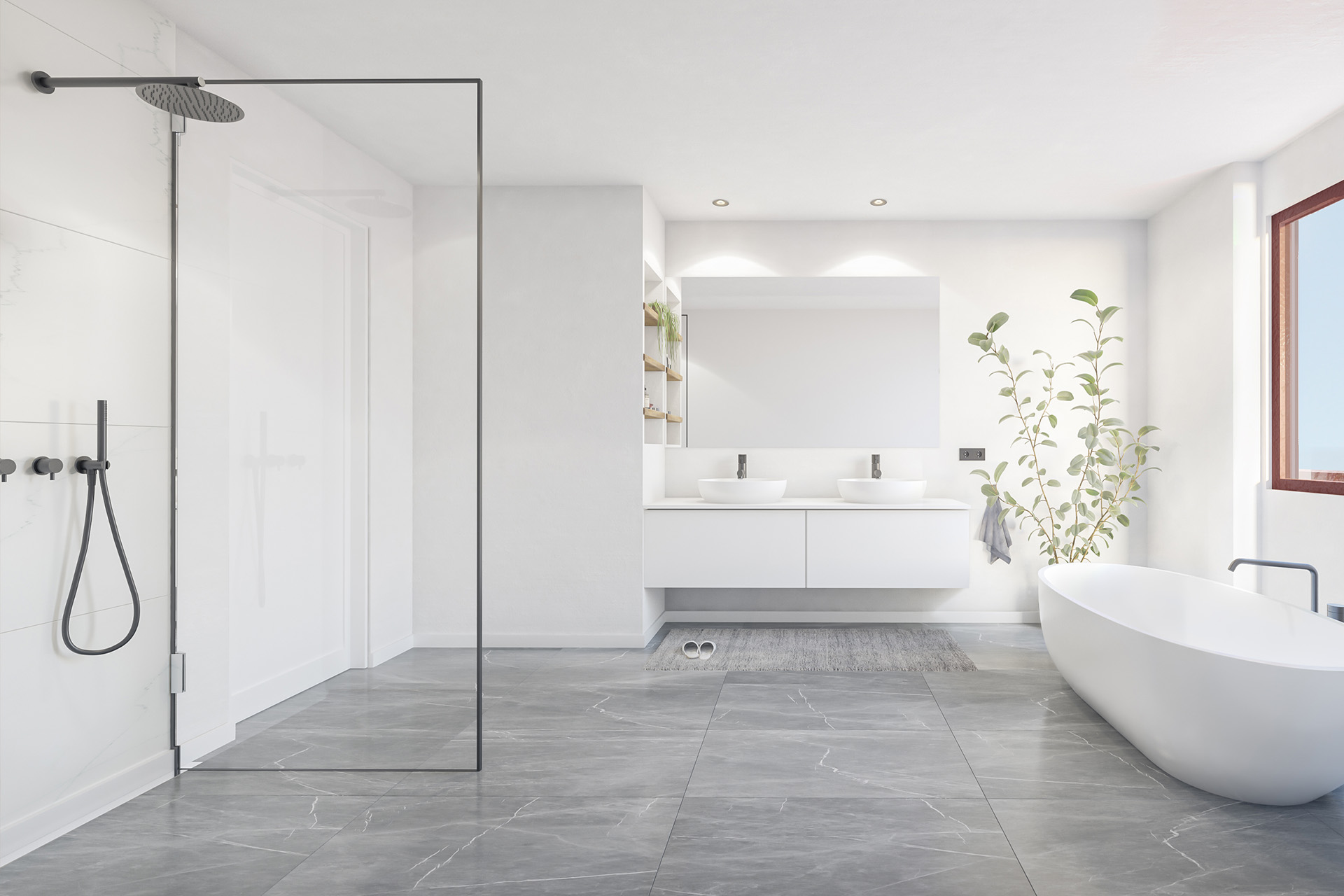 Essentieel is dat je badkamer aansluit op je persoonlijkheid. Daarom bieden we je de mogelijkheid om de ‘look & feel’ van deze badkamer te ervaren in onze verkoopscontainer ter plaatse. Wil je voor andere materialen kiezen? Dat kan! Kies je niet voor dit sanitair en tegels dan beschik je over een budget te kiezen bij onze onderaannemer.