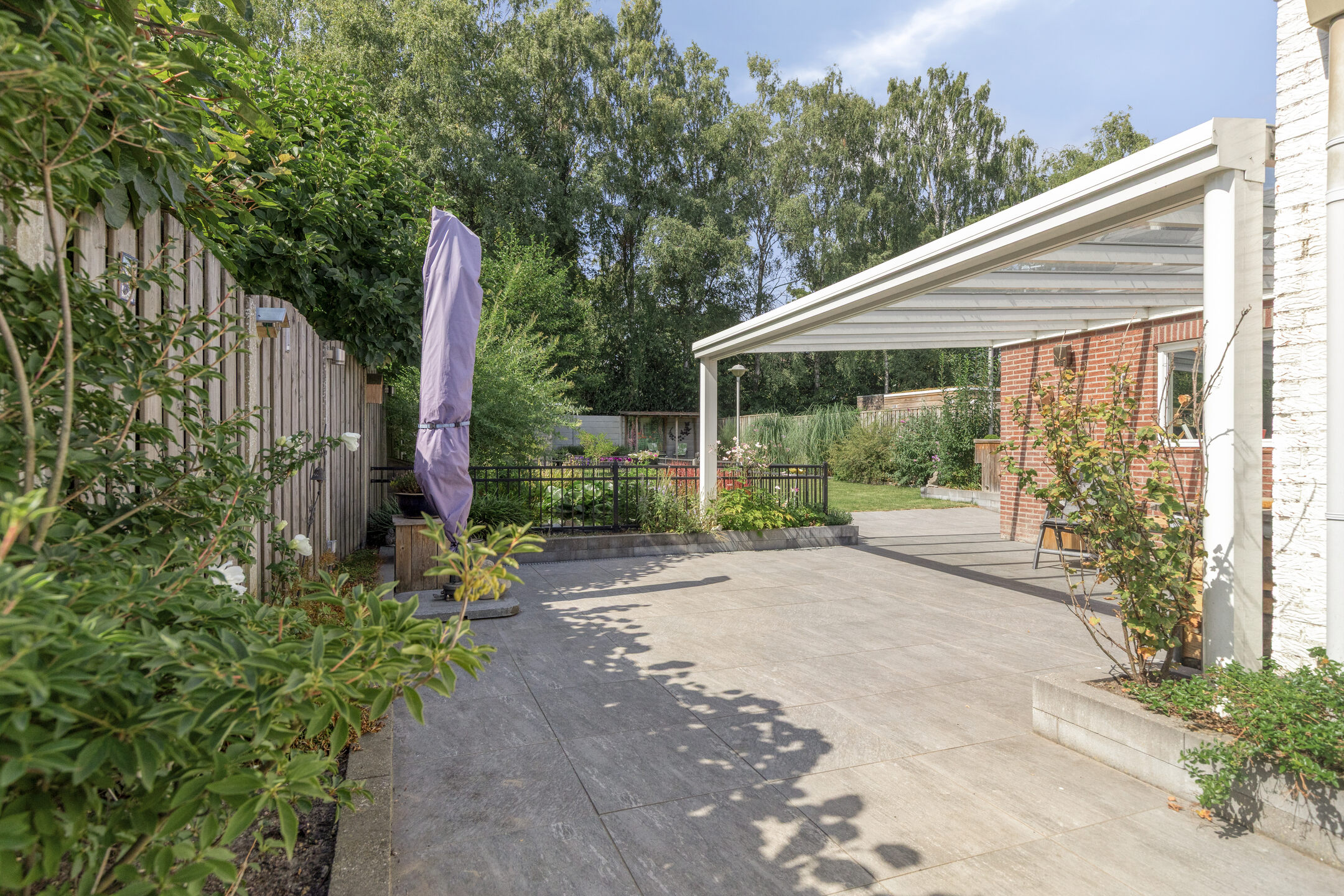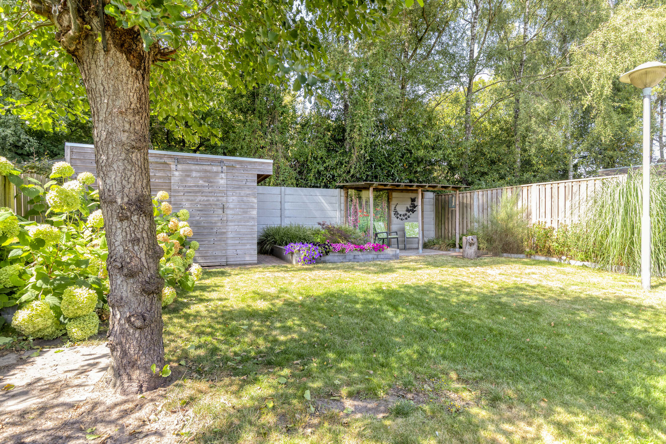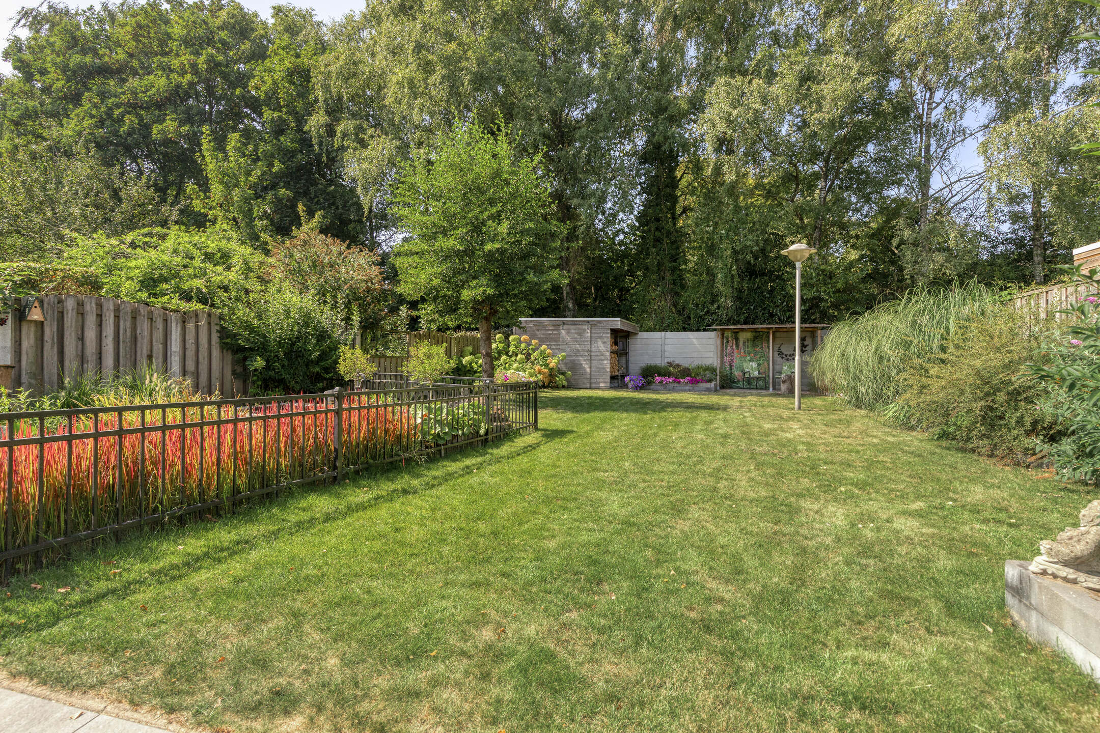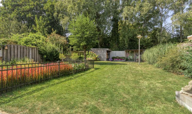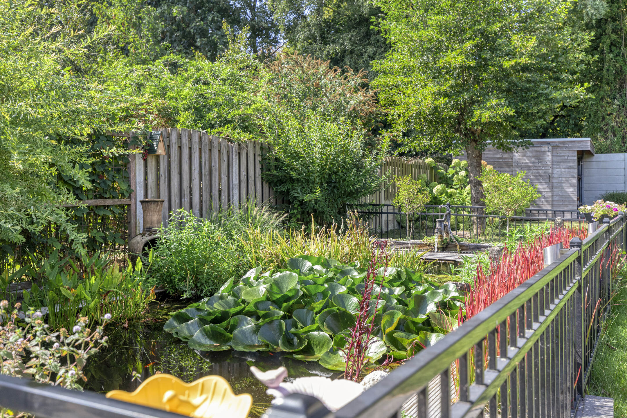 Buitenruimte: Een zonnige en goed onderhouden achtertuin maakt het woongenot helemaal compleet. Het bestraatte terras is deels overkapt en biedt volop plek voor een buitentafel en loungeset, terwijl het vele groen zorgt voor een levendige en speelse uitstraling. In de tuin vindt u tevens een berging, een overkapping en een fraaie vijver. Dankzij de poort langs de garage heeft u toegang tot de tuin. Hier geniet u in alle seizoenen van uw eigen buitenruimte.