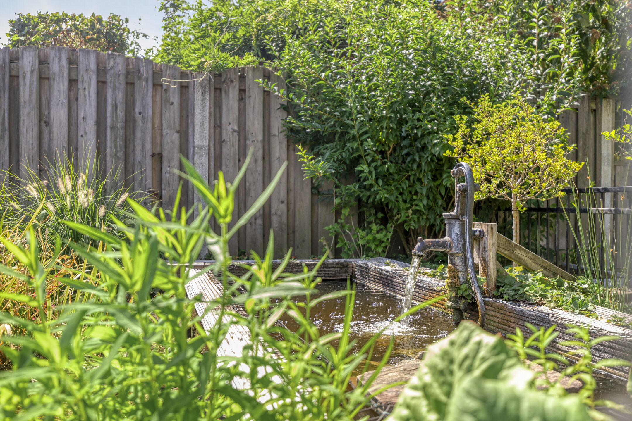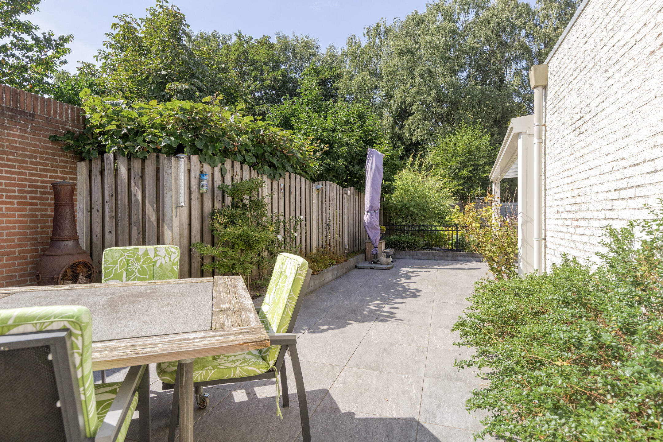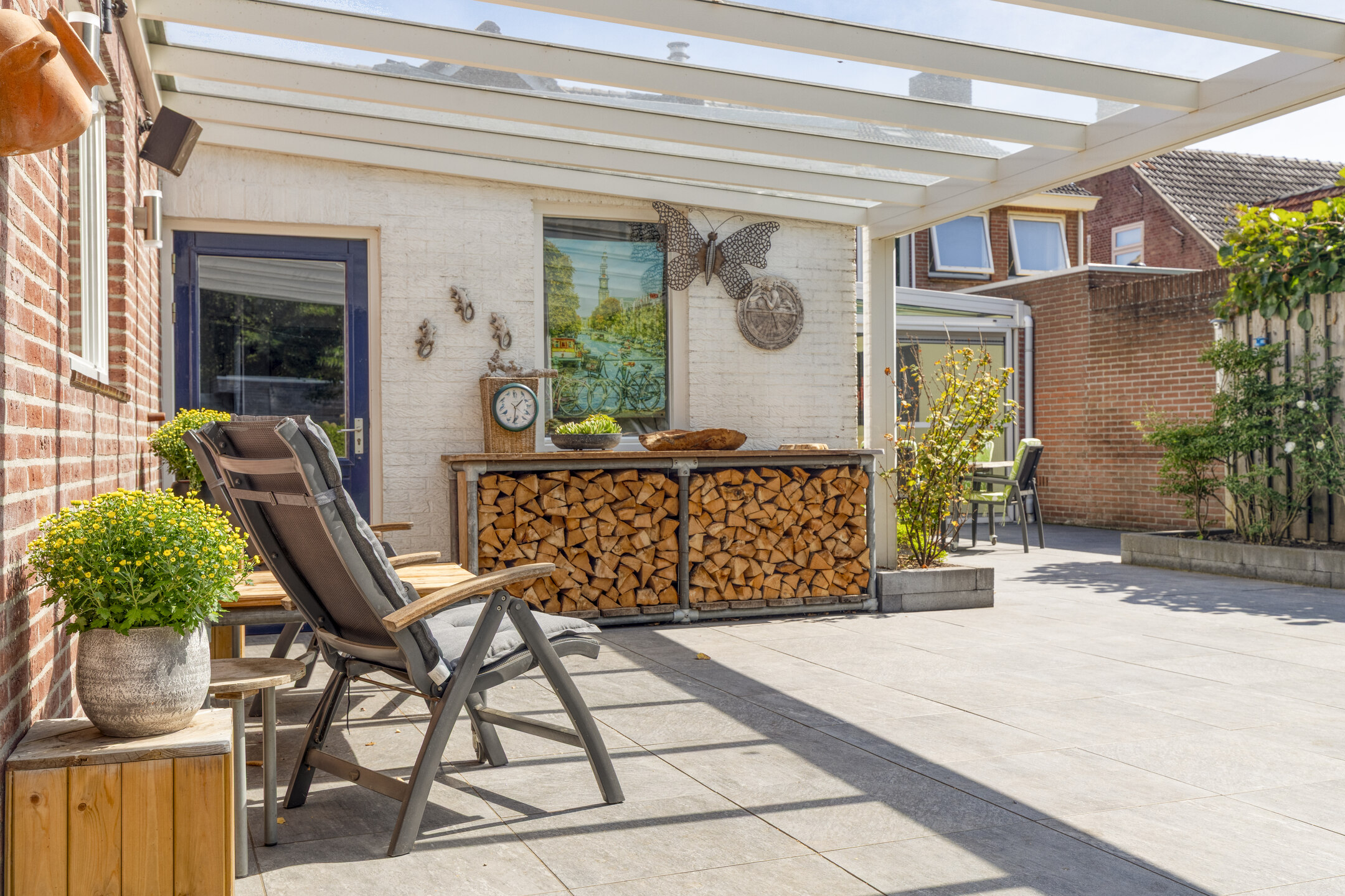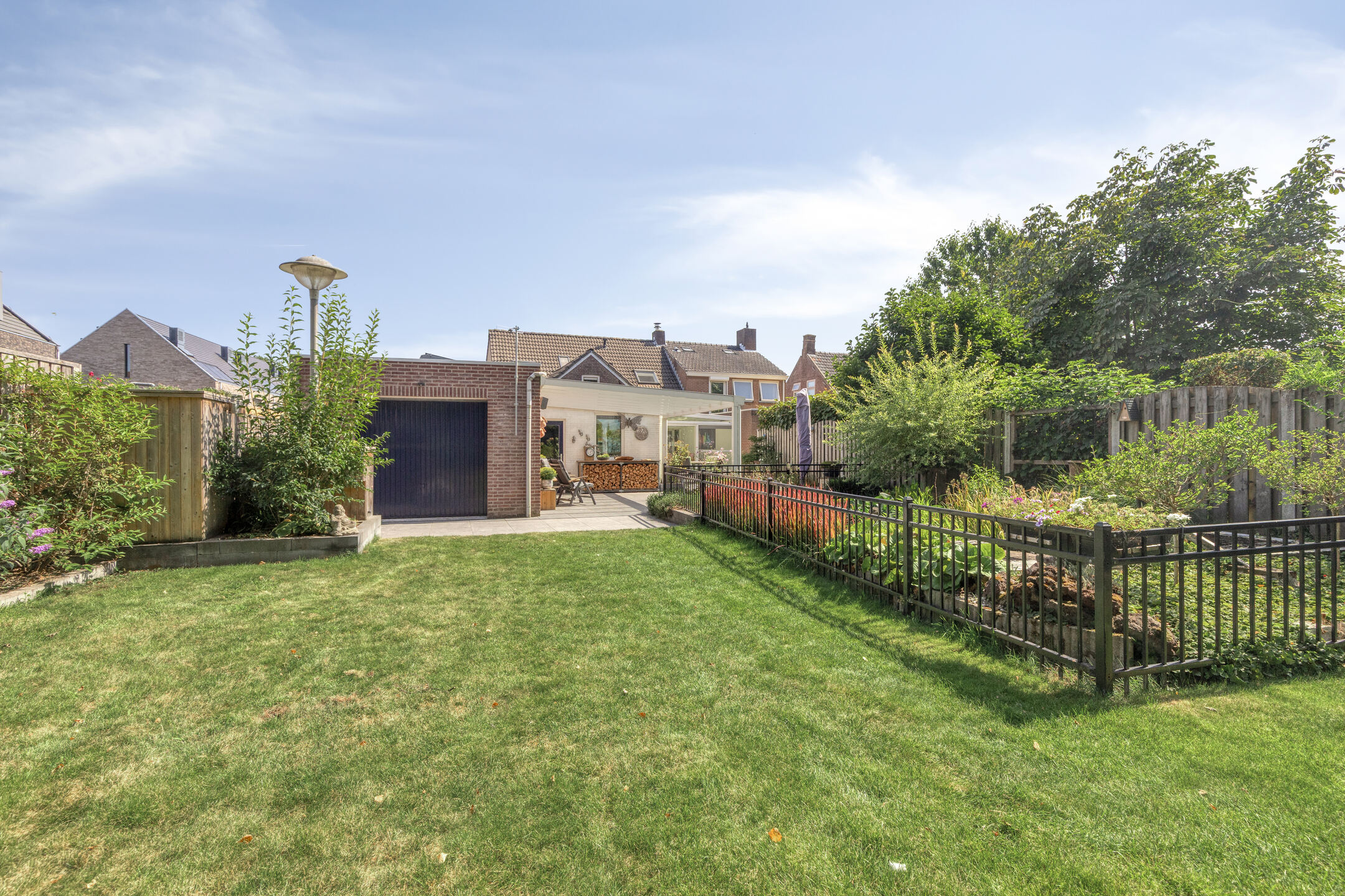 Buitenruimte: Een zonnige en goed onderhouden achtertuin maakt het woongenot helemaal compleet. Het bestraatte terras is deels overkapt en biedt volop plek voor een buitentafel en loungeset, terwijl het vele groen zorgt voor een levendige en speelse uitstraling. In de tuin vindt u tevens een berging, een overkapping en een fraaie vijver. Dankzij de poort langs de garage heeft u toegang tot de tuin. Hier geniet u in alle seizoenen van uw eigen buitenruimte.