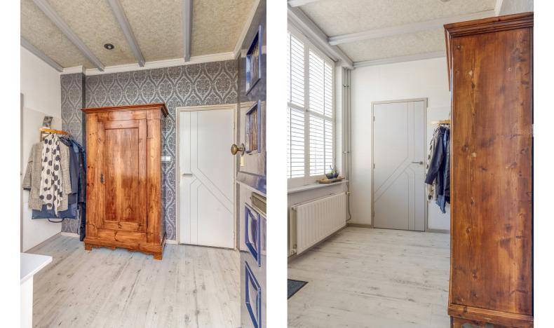 Bijkeuken: Een praktische bijkeuken grenst direct aan de keuken en biedt extra opslagmogelijkheden. Bovendien is hier de witgoedaansluiting aanwezig, zodat u deze ruimte ideaal kunt gebruiken als wasruimte en berging. Vanuit de bijkeuken heeft u toegang tot het toilet en via een vlizotrap tot de zolder. Via een vlizotrap bereikt u de verdieping, die eveneens als opbergruimte kan worden benut.
