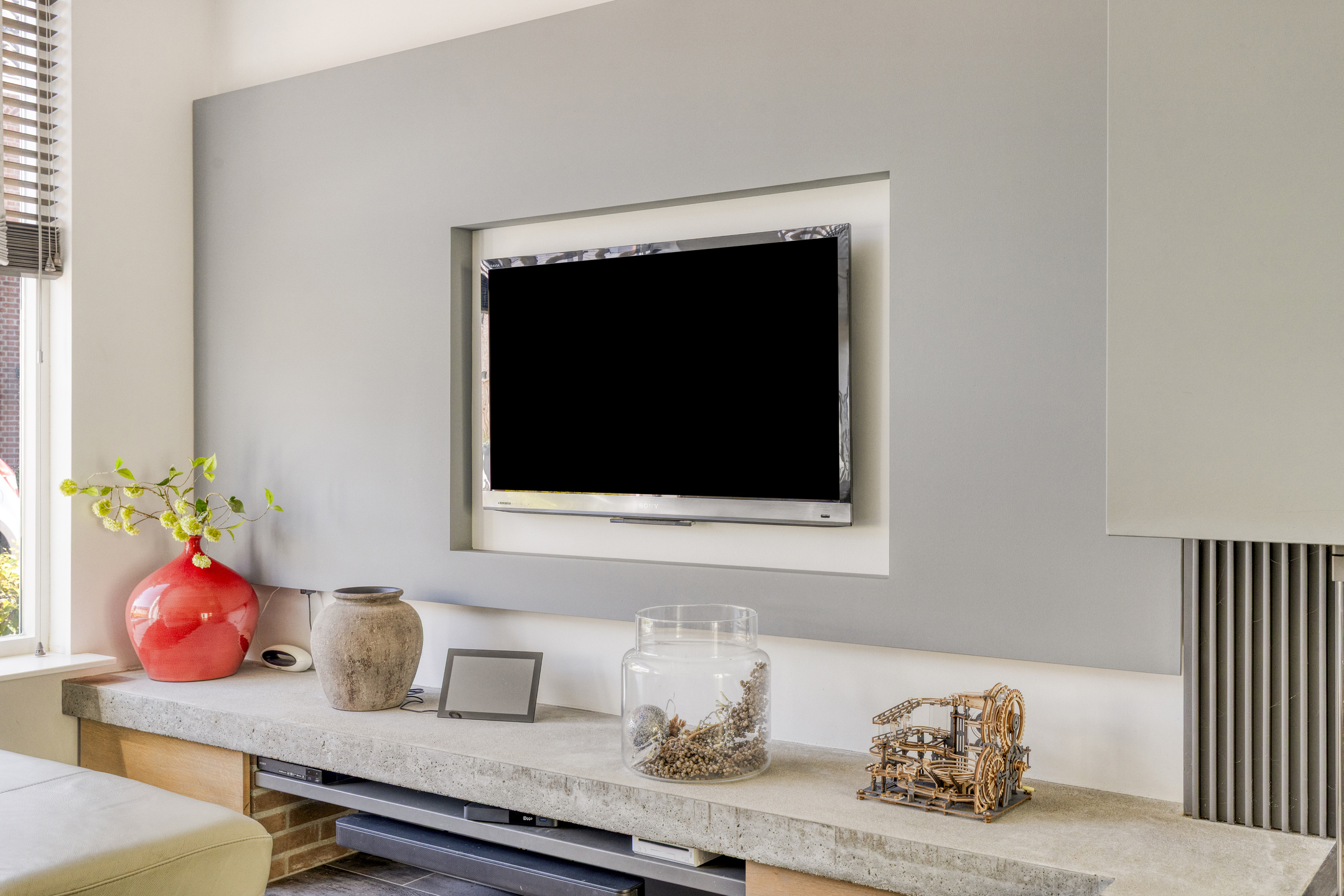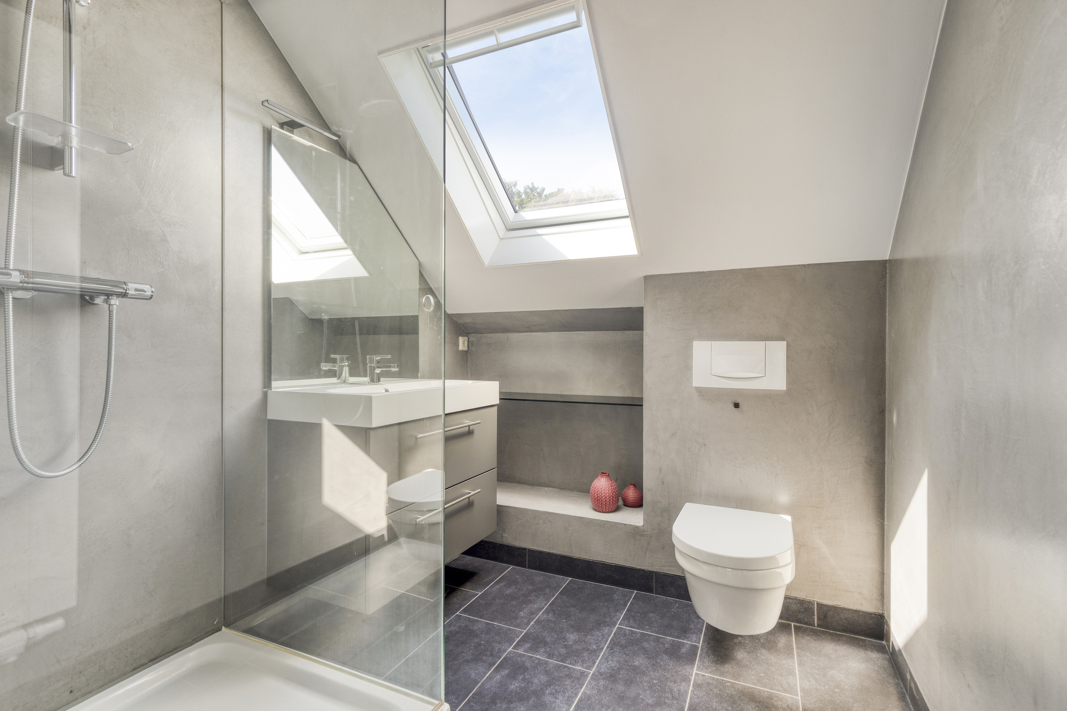 Badkamer: Een moderne badkamer maakt het geheel compleet. De vloer is betegeld en de wanden zijn voorzien van een waterdichte betonciré, waardoor een luxe afwerking wordt gerealiseerd. U beschikt hier over een douche met glazen wand, een zwevend toilet en een wastafel met opbergmeubel, spiegel en radiator. Een fijne ruimte om de dag ontspannen te beginnen of juist af te sluiten.
