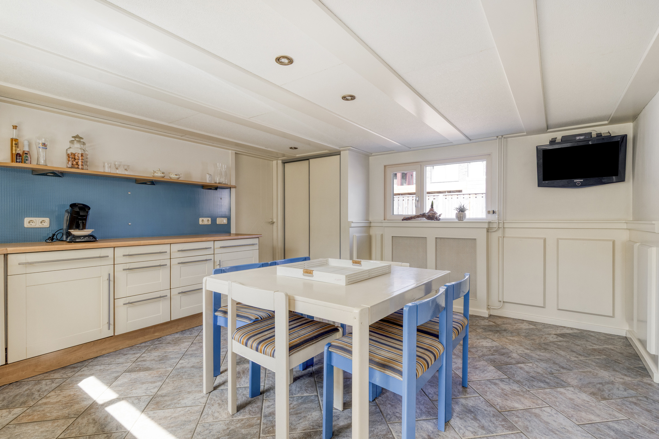Keuken: Een ruime keuken sluit aan op de eetkamer en is voorzien van een L-vormig aanrechtblad met alle benodigde inbouwapparatuur. U vindt er onder andere een keramische kookplaat met afzuigkap, een koelkast, een vriezer, een ingebouwde ovencombinatie, een vaatwasser en een spoelbak. De keuken is ruim genoeg om er ook een eettafel te plaatsen, wat het tot een centrale en gezellige leefruimte maakt.