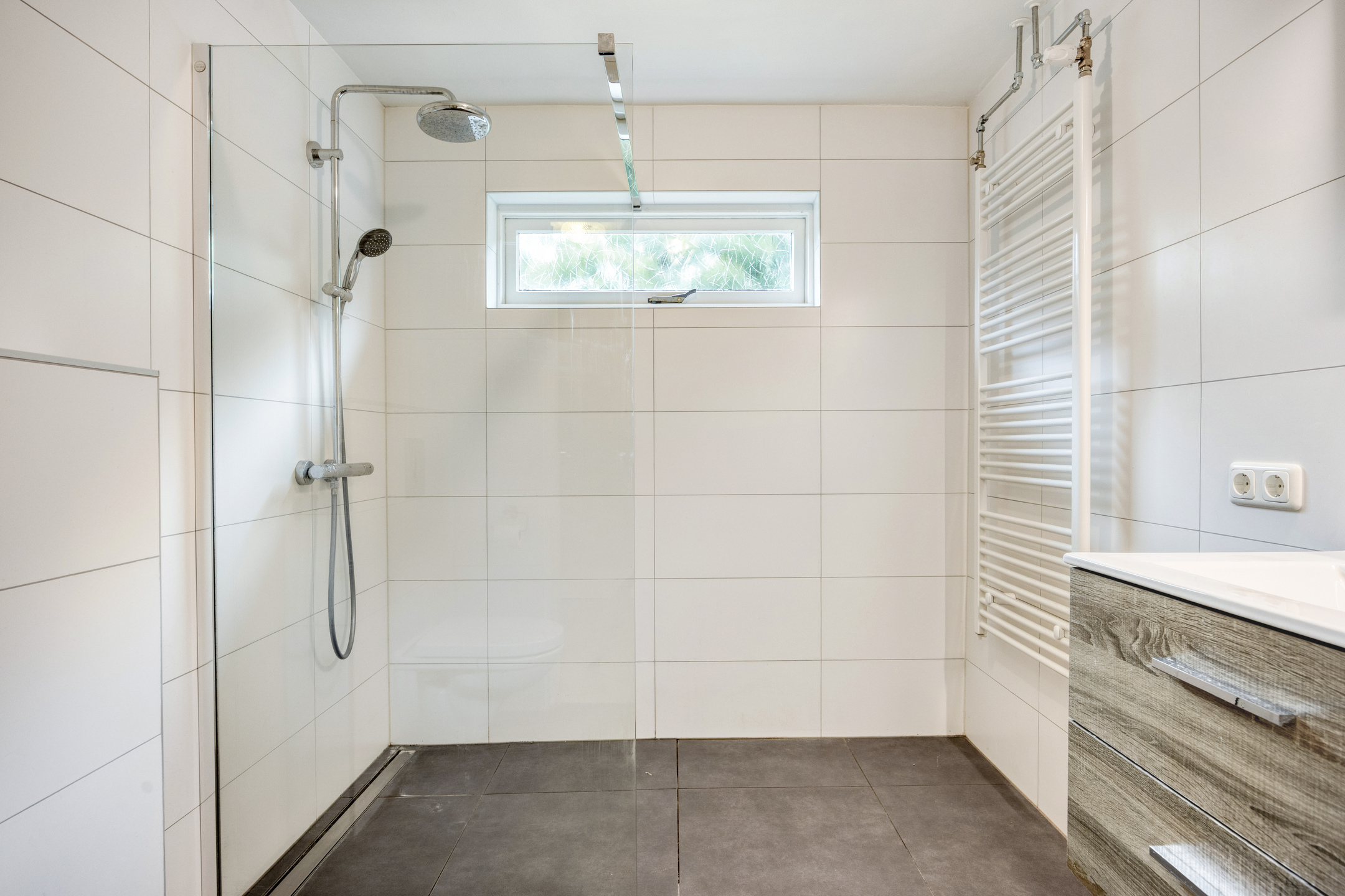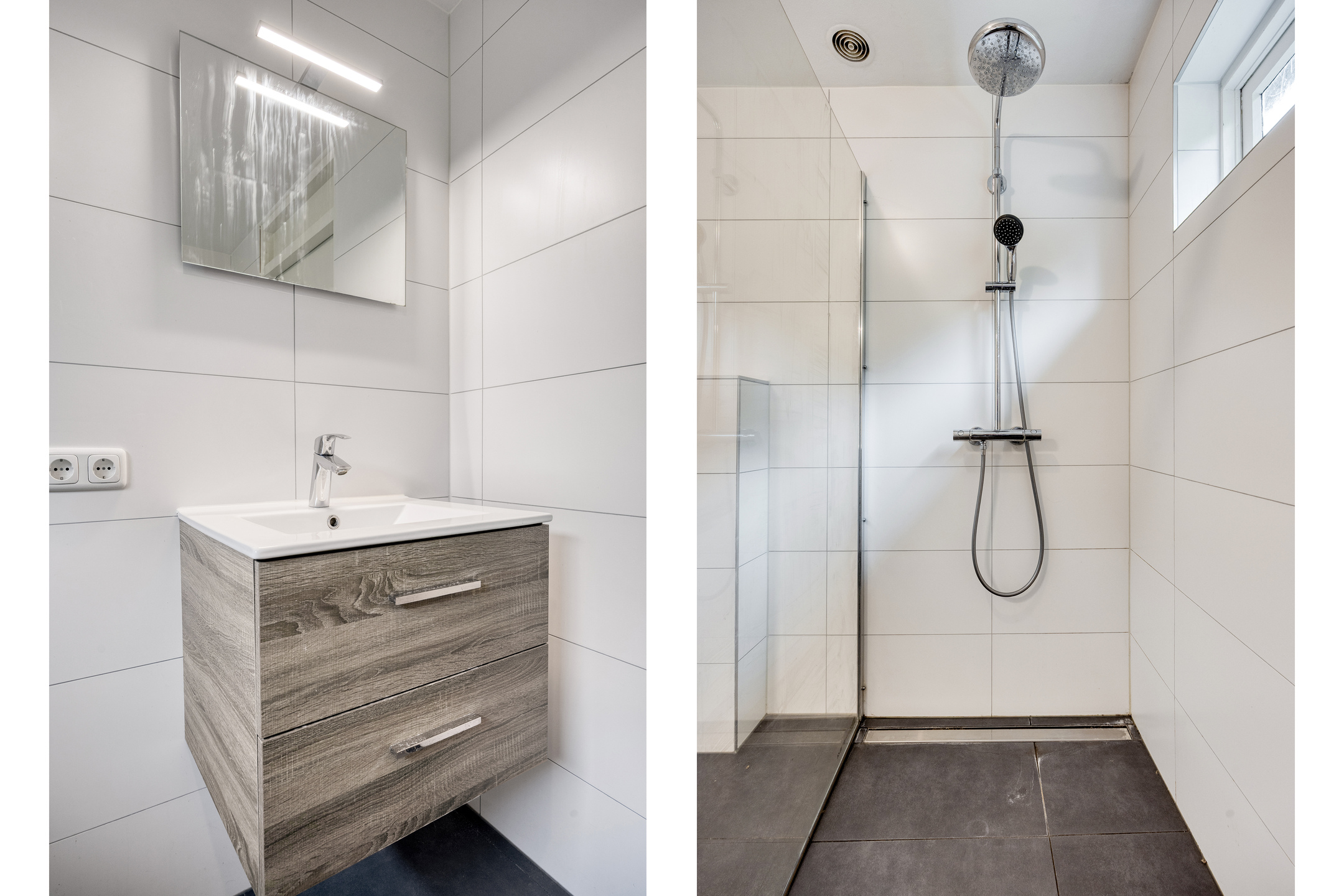 Eerste verdieping De overloop geeft toegang tot vier ruime slaapkamers, stuk voor stuk licht en goed in te delen. Eén kamer aan de achterzijde heeft toegang tot een balkon dat uitkijkt over de tuin — een fijne plek voor een kop koffie in de ochtendzon. De badkamer doet modern aan en is uitgevoerd met een inloop regendouche, wastafelmeubel met spiegel en een wandcloset.