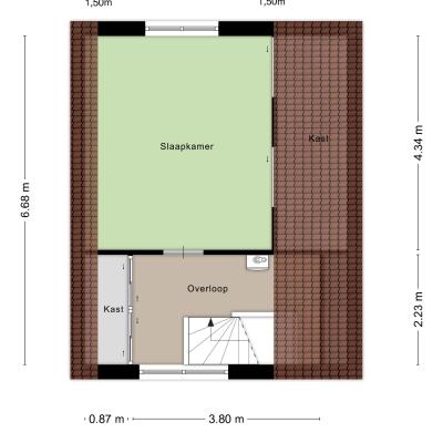 Tweede verdieping: Een vaste trap leidt u naar de tweede verdieping waar u nog een derde, ruime slaapkamer aantreft. Gelegen in de punt van het dak, straalt deze kamer karakter en sfeer uit. De kamer is veelzijdig inzetbaar: als masterbedroom, logeerkamer of werkkamer. De overloop biedt extra kastruimte dankzij de ingebouwde opbergmogelijkheden, waardoor alles overzichtelijk en netjes blijft.