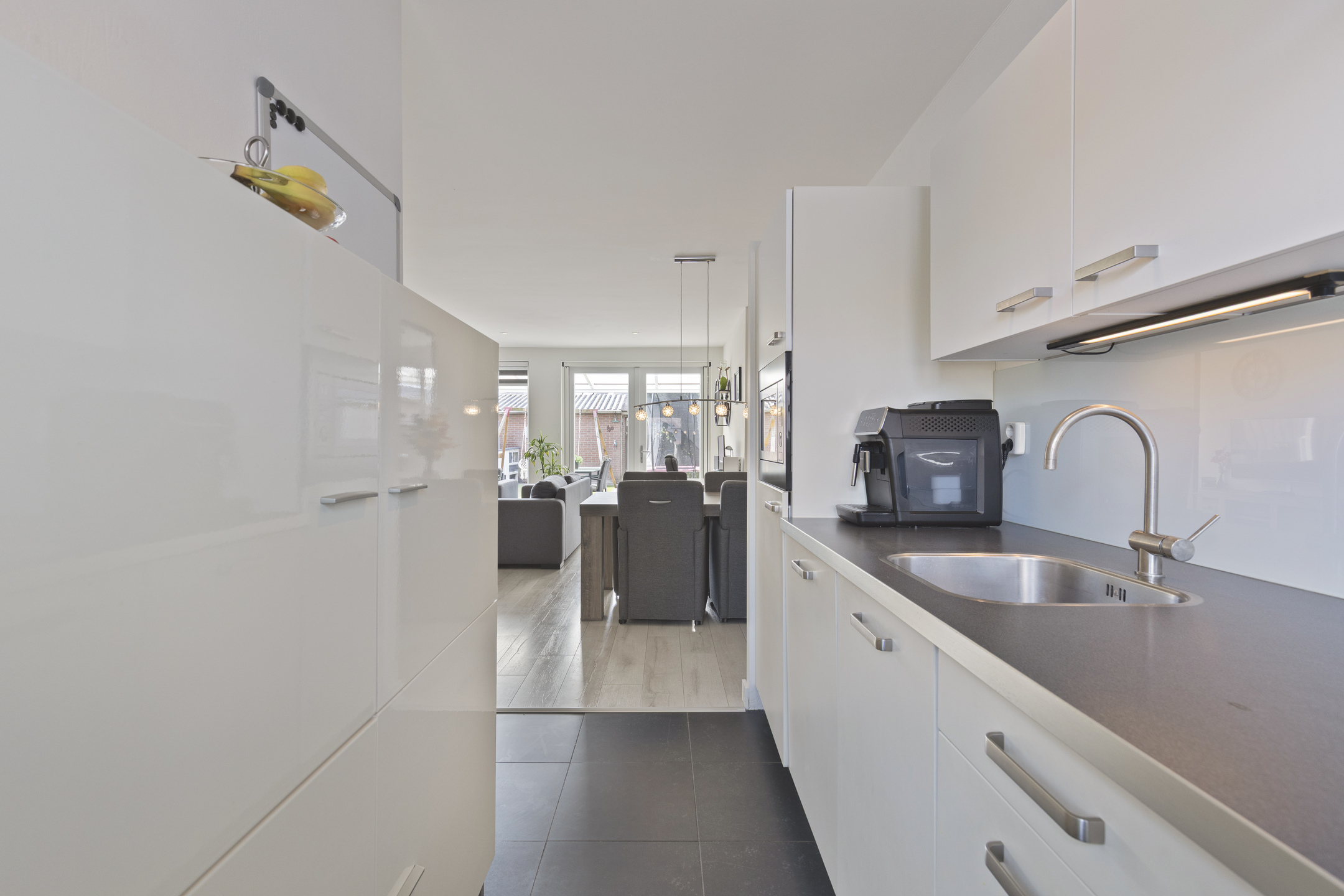 Keuken: Aan de voorzijde van de woning bevindt zich de keuken, voorzien van een langwerpig aanrechtblad, inductiekookplaat, ingebouwde combi magnetron/oven, vaatwasser en koelkast. U beschikt hier over voldoende kastruimte en werkoppervlak. De keuken is netjes onderhouden en direct bruikbaar, maar biedt ook mogelijkheden om naar eigen smaak te moderniseren.