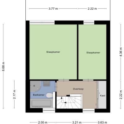 Slaapkamers: Beide slaapkamers zijn royaal van formaat en profiteren van veel lichtinval. U kunt de kamers naar wens gebruiken als slaap-, werk- of hobbyruimte. Door de praktische indeling is er voldoende ruimte voor zowel een bed als een bureau of opbergmeubel, waardoor de verdieping ideaal is voor een groeiend gezin.
