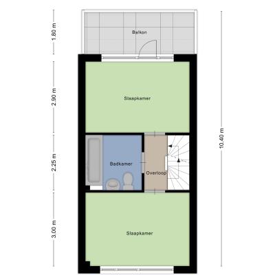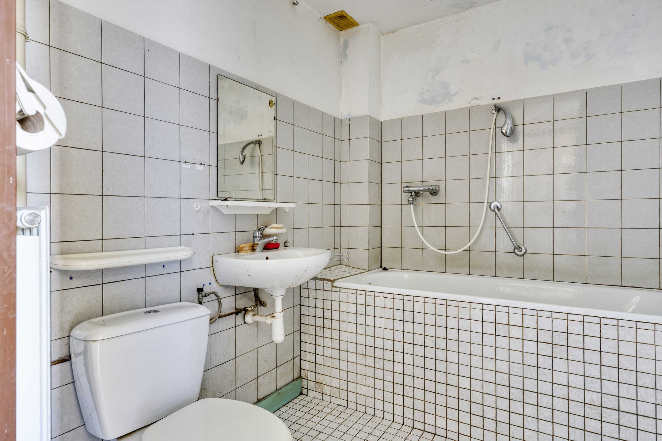 Eerste verdieping Op de eerste verdieping bevinden zich twee slaapkamers, de badkamer en het balkon. Eén kamer ligt aan de achterzijde en biedt directe toegang tot het balkon. De tweede slaapkamer is gelegen aan de voorzijde en is even ruim. De badkamer is functioneel maar sterk gedateerd, met een bad-/douchecombinatie, toilet en wastafel. Deze verdieping biedt volop mogelijkheden voor renovatie, herindeling of uitbreiding van het sanitair.