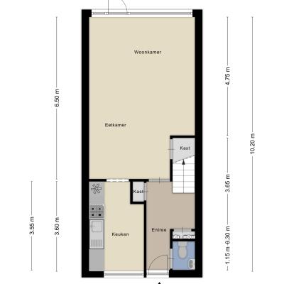 Begane grond U betreedt de woning via een ruime hal met garderobehoek, meterkast, trapopgang en toilet. De woonkamer is opvallend ruim, met een lengte van maar liefst 6,50 meter en veel lichtinval dankzij de grote raampartij aan de achterzijde. Hier is voldoende plek voor een comfortabele zithoek én een grote eettafel. Een achterdeur geeft toegang tot de tuin. Aan de voorzijde van de woning vindt u de semi-open keuken, voorzien van houten kastfronten en diverse apparatuur. De keuken is wel echt toe aan een upgrade, wat geweldige kansen biedt voor die droomkeuken.