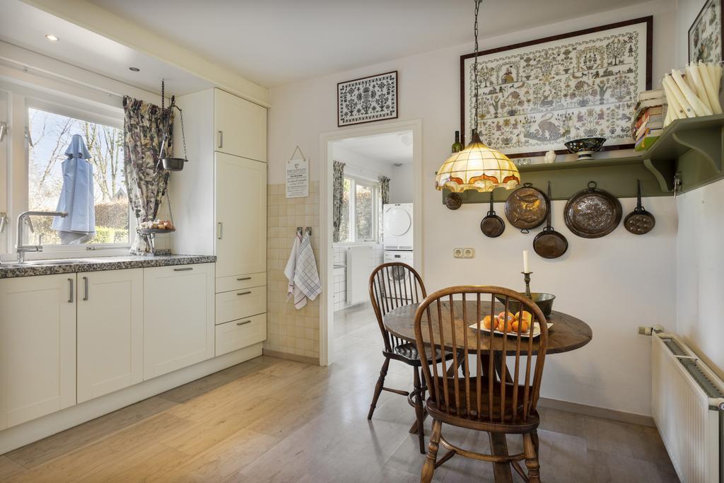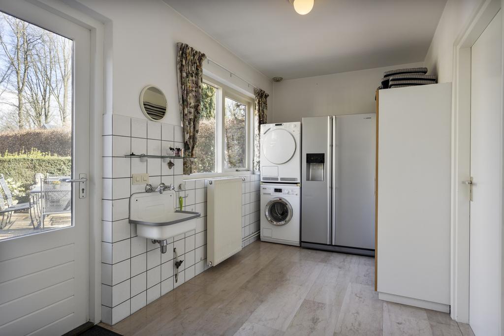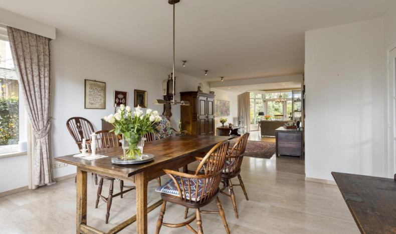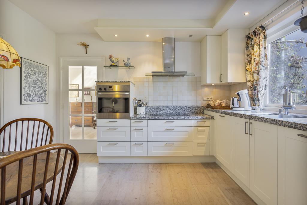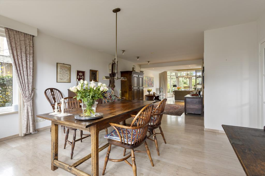 Bij binnenkomst in deze woning krijgt u direct een warm gevoel door de ruime en lichte entree. Het toilet met fontein, trapopgang en de meterkast zijn uiteraard aanwezig, maar het is vooral de mooie plavuizenvloer, die strekt over de gehele begane grond, en het hoge plafond die de aandacht trekken. De riante woonkamer, met prachtige serre en openslaande deuren naar de achtertuin, geven een gevoel van ruimte en vrijheid. Genoeg ruimte voor een comfortabele zithoek en een grote eethoek, voor gezellige momenten met het hele gezin. De ruime keuken is ingericht met licht hoekmeubel en diverse inbouwapparatuur. U beschikt onder andere over een inductiekookplaat, afzuigkap, een combi-oven en een vaatwasser. In de grote aangrenzende bijkeuken vindt u tevens een Amerikaanse koelkast, de witgoedaansluitingen en veel opbergruimte. U krijgt toegang tot de achtertuin en er is ook een doorgang naar de inpandige garage!
