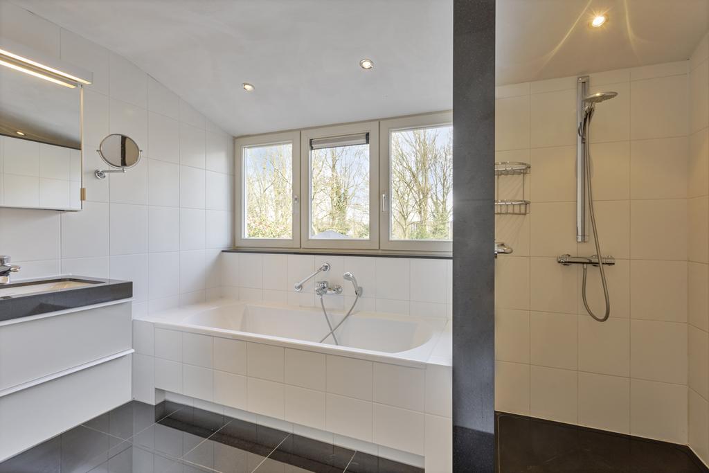 Op de eerste verdieping vindt u maar liefst vier ruime slaapkamers, elk voorzien van veel opbergruimte en een aangename lichtinval. De neutrale afwerking geeft de kamers een rustgevende sfeer. De overloop en de slaapkamers zijn voorzien van een lichte tapijtvloer. De moderne badkamer is volledig betegeld en heeft alles wat u nodig heeft om heerlijk te ontspannen: een ligbad, een ruime inloopdouche, een groot badmeubel met dubbele wasbak, een spiegelkast, designradiator, opbergruimte en een hangend toilet.