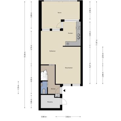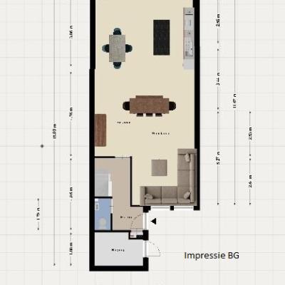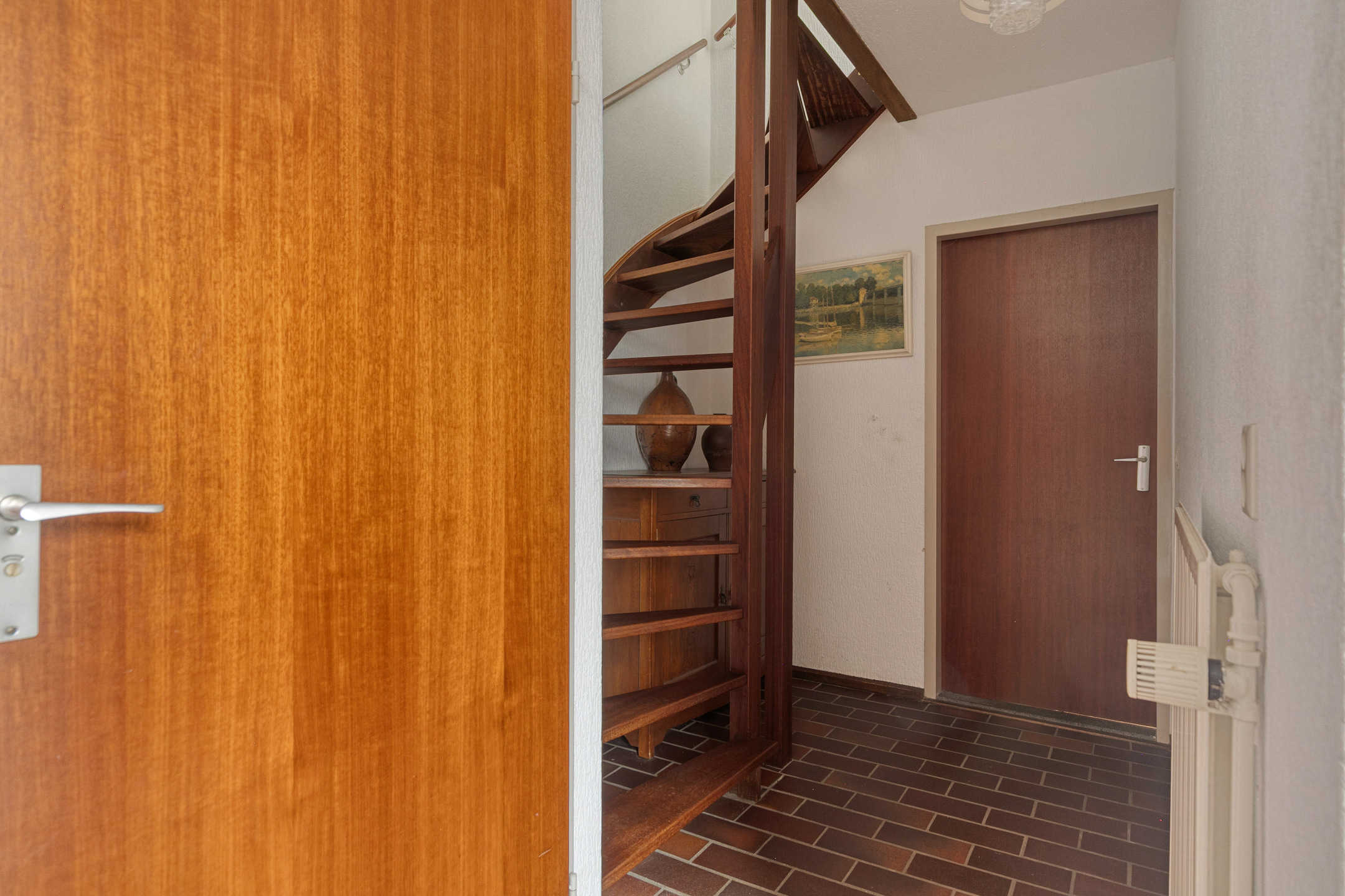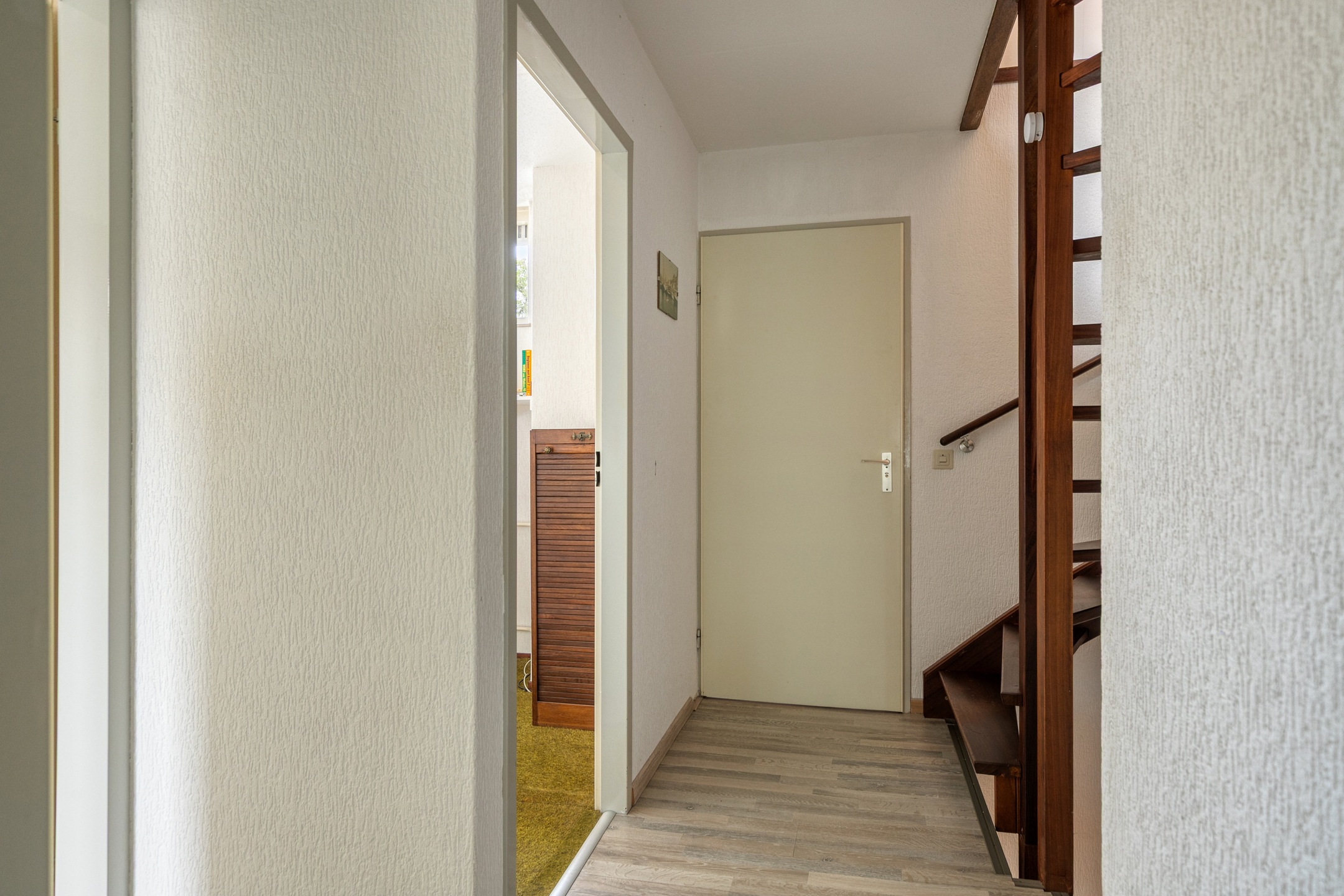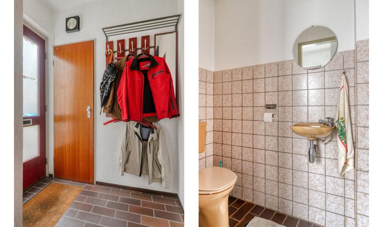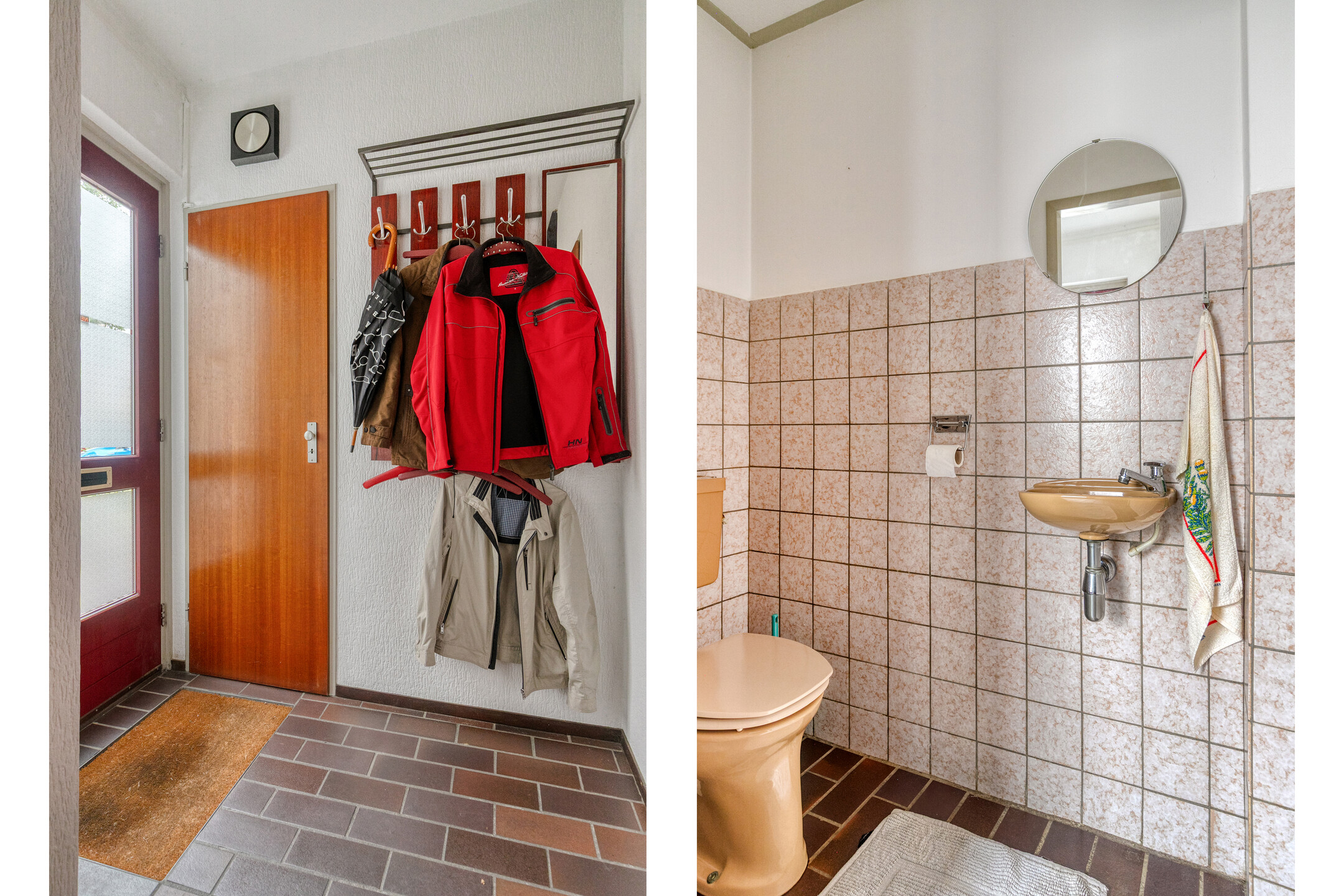 Entree De entree van de woning bevindt zich aan de straatzijde, bereikbaar via de levendige voortuin waar zich ook de berging bevindt. Eenmaal binnen komt u in de hal, die toegang biedt tot de toiletruimte, de trap naar de eerste verdieping en de doorgang naar de woonkamer. De hal vormt zo het centrale startpunt van de woning en nodigt uit om verder te ontdekken.