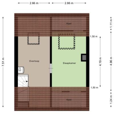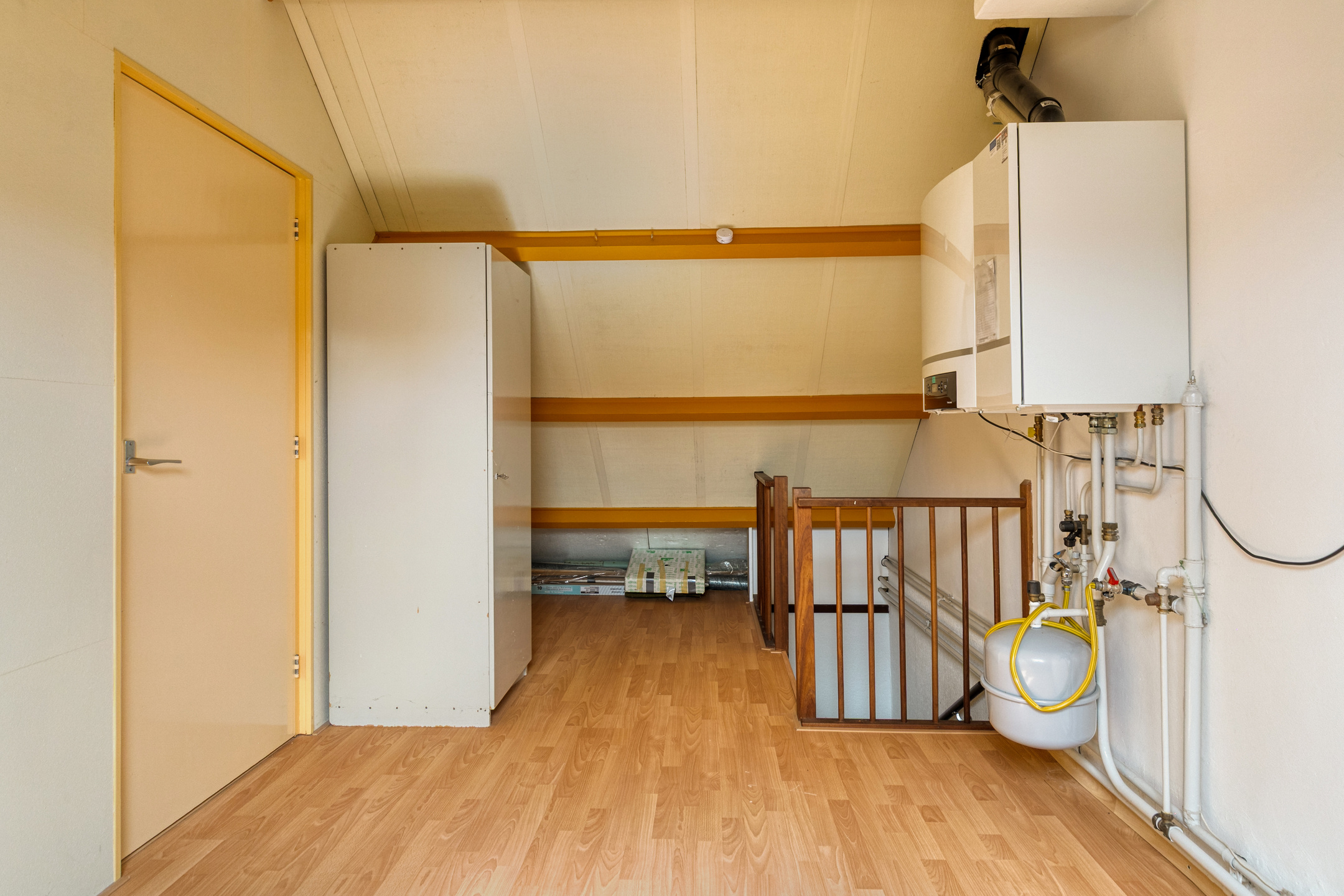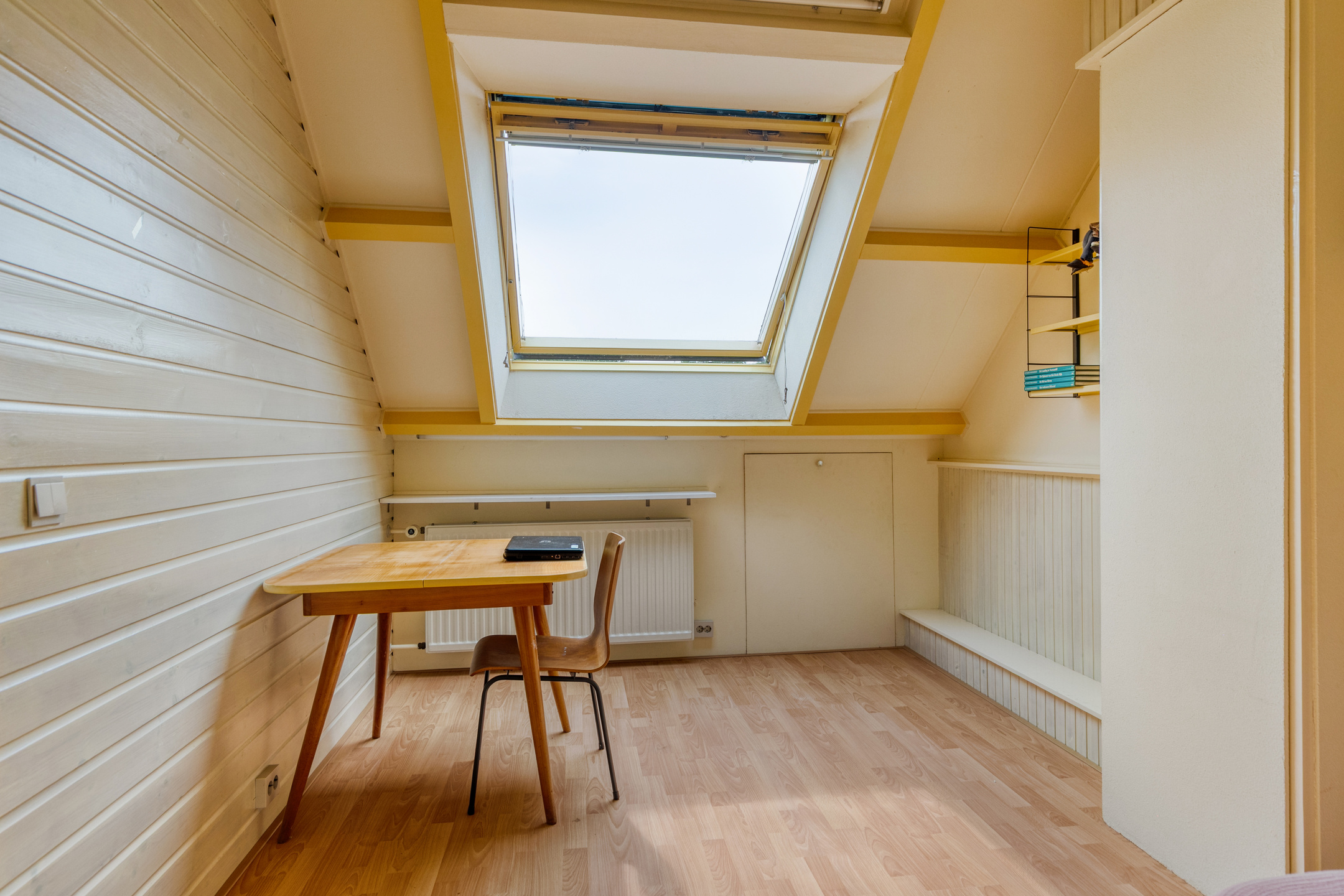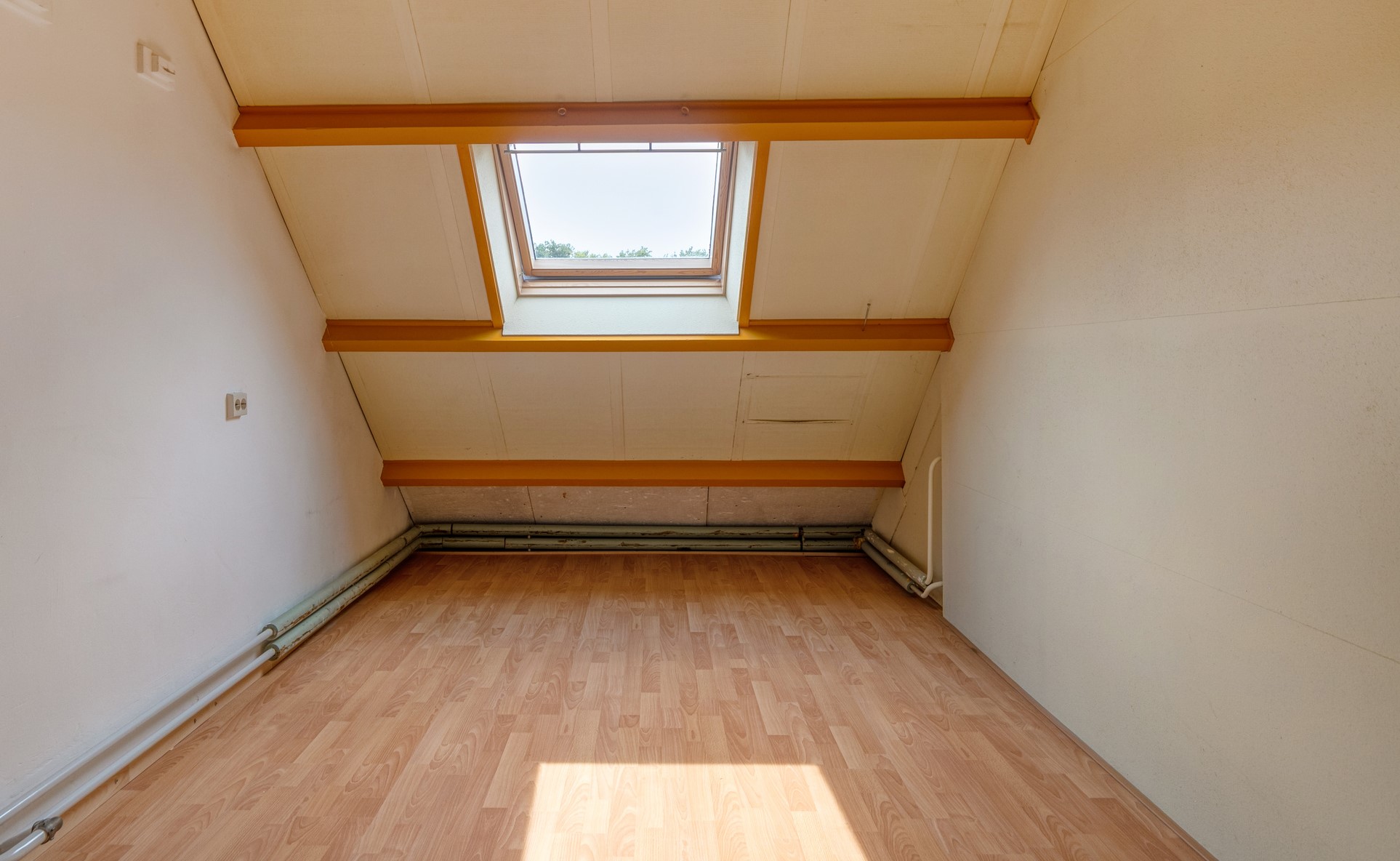 2e verdieping Een tweede vaste trap leidt naar de zolderverdieping. Hier vindt u een ruime overloop en een vierde royale slaapkamer. Door het hoge plafond en de schuine wanden heeft deze ruimte karakter en is er ruim voldoende plek om een vijfde volwaardige slaap-/studeerkamer te realiseren of om de wasmachine te plaatsen.