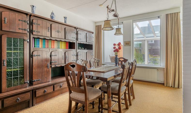 Woonkamer Een open woonkamer strekt zich uit over de volledige diepte van het huis en profiteert van grote raampartijen, waardoor het geheel heerlijk ruimtelijk aanvoelt. De indeling biedt volop mogelijkheden voor een gezellige zithoek én een royale eettafel. Hier is het fijn thuiskomen, of u nu ontspannen een boek leest of vrienden ontvangt voor een diner. Met enige modernisering past u deze ruimte volledig naar uw smaak aan.