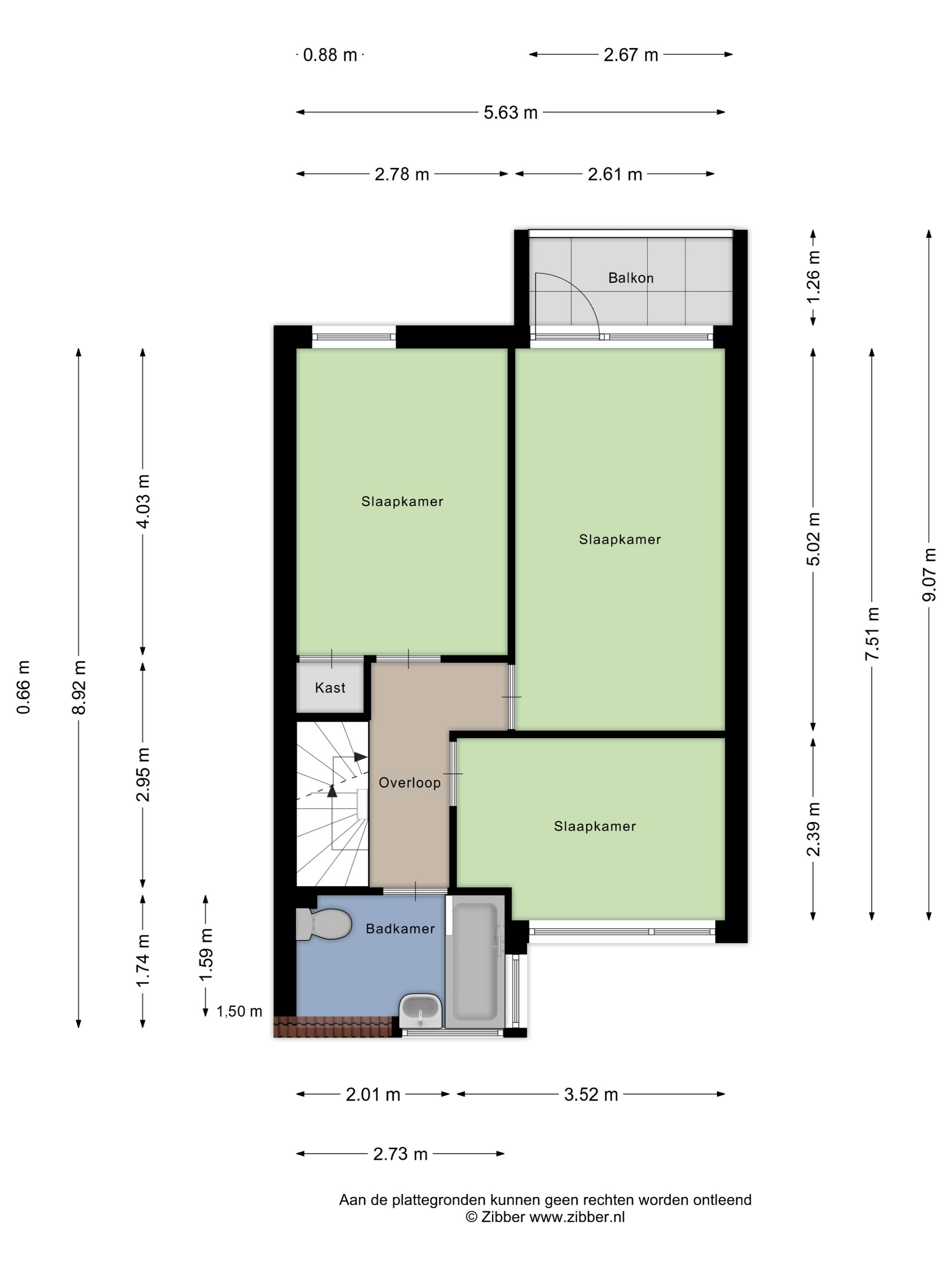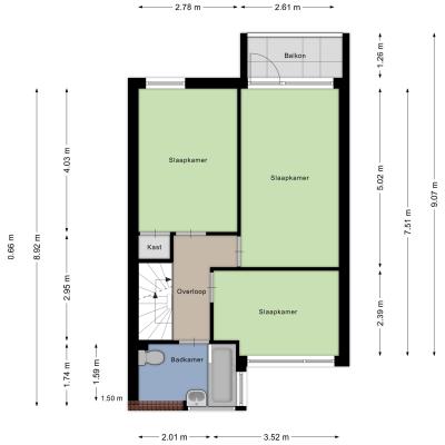 1e verdieping Vanuit de hal brengt u naar de eerste verdieping, waar drie slaapkamers en de badkamer zich bevinden. Deze etage biedt veel ruimte voor gezinsleden of gasten en kan volledig naar eigen inzicht worden ingedeeld. Slaapkamers Drie slaapkamers grenzen aan de overloop en variëren ietwat in grootte. Eén van de slaapkamers beschikt over een balkon om even te kunnen genieten van de frisse lucht. Alle kamers hebben veel lichtinval en zijn netjes onderhouden.
