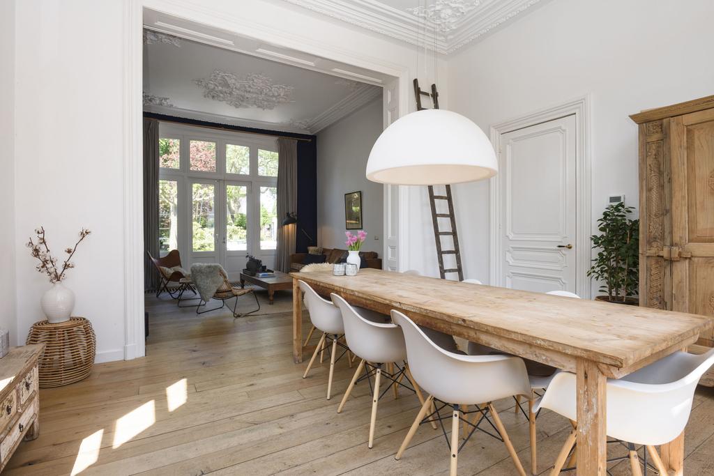 Begane grond U stapt binnen in de ruime hal, met natuurstenen vloer, waar de authentieke kenmerken direct zichtbaar worden. De meterkast, werkkamer, garderobe, toiletruimte, trapopgang, woonkamer, keuken en tuin worden toegankelijk gemaakt. De riante woonkamer en suite is heerlijk licht en voorzien van een houten vloer, vele grote en hoge raampartijen en openslaande deuren naar de tuin. De authentieke details komen hier mooi samen; dat hoge plafond, de sfeervolle haard, mooie sierlijsten, - ornamenten en prachtige houtbewerking plaatsen u terug in 1881.