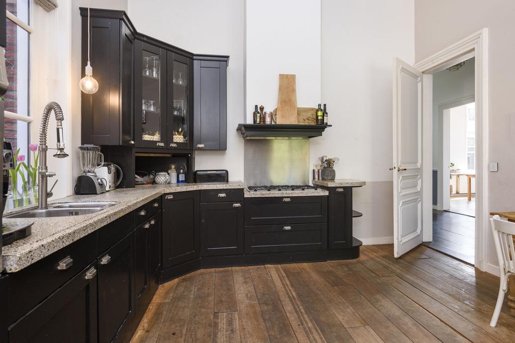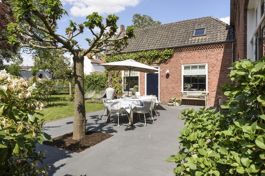 De klassieke keuken is voorzien van modern gemak en passend bij de stijl van het huis; dubbele spoelbak met designkraan, 90 cm breed gaskookplaat, afzuigkap, oven, koel-/vriescombinatie en vaatwasser. Door de dubbele raampartij heeft u een prettige lichtinval. Aangrenzend treft u de fraaie tuinkamer, met balkenplafond, grote raampartij en houtkachel. Via deze kamer bereikt u een portaal met toegang tot de tuin en het atelier. Het lichte atelier is eveneens ruim en goed verlicht door de openslaande tuindeuren. Een vaste trap brengt u naar de vide, alwaar u een ruime slaapkamer/leuke speelkamer aantreft. Via de tuinkamer bereikt u tevens de zolder van de tuinkamer, deze grenst aan de vide.