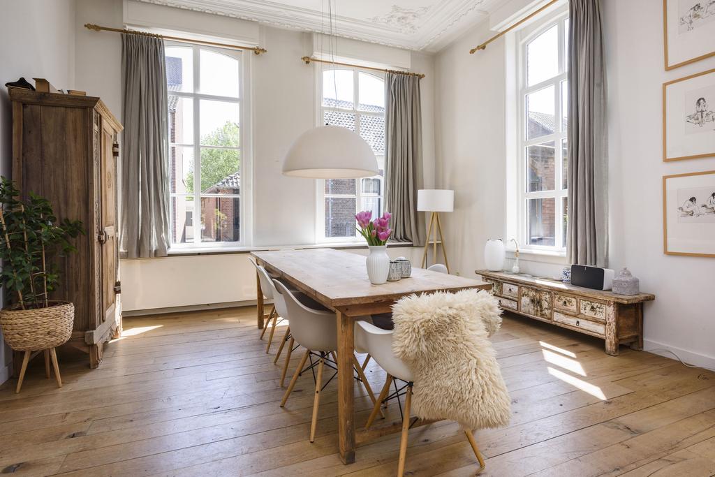 Dit karakteristieke 19e -eeuwse pand heeft vele authentieke kenmerken uit die tijd; de statige voorgevel met de omlijstingen van de ramen met kuiven en de poortjes aan weerszijden van de woning. Boven de voordeur zit een glas in lood raam met een afbeelding van duiven. De hoge plafonds en - deuren, sierlijsten, ornamenten, trapspijlen, open haard, houten vloer, de ruime kamers en het mooie glas-in-lood raam in het trappenhuis. Dit voormalige doktershuis (tot aan 1925) is dan ook met recht een plaatje te noemen. In 1986 is het bestempeld tot een gemeentelijk monument.