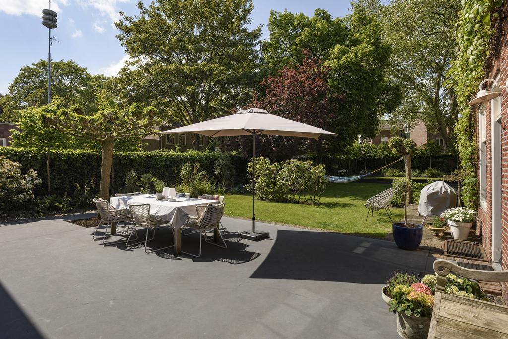 Tuin De zeer royale fraai aangelegde achtertuin is gelegen op het noordwesten. De tuin is voorzien van een groot terras, weids gazon met speelveld en diverse beplanting. Deze tuin is uitermate geschikt voor diverse zitjes en feesten met familie en vrienden. De garage is vanuit de achterliggende straat en tevens via de tuin bereikbaar.