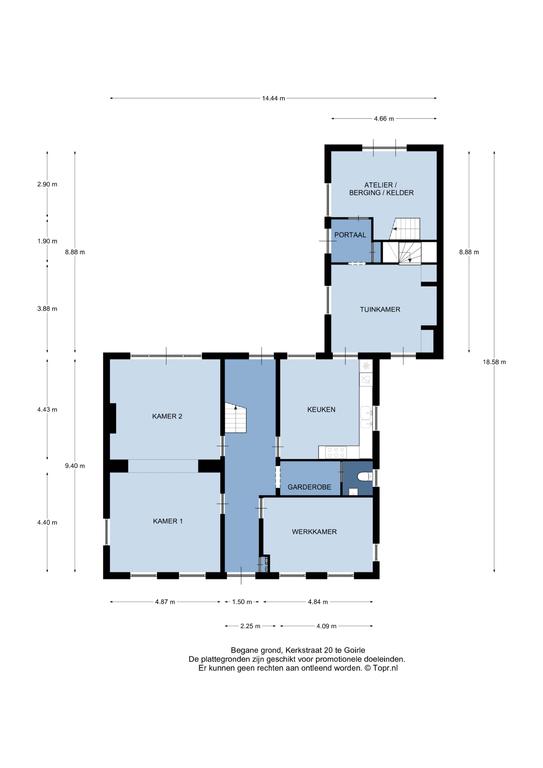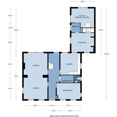• Perceeloppervlakte: 727 m² • Woonoppervlakte: 293 m² • Inhoud: 1218 m³ • Bouwjaar: 1881 (1880 was het voormalige huis, dit is daarna gebouwd – bron: https://www.steengoedgoirle.nl/woonhuis-kerkstraat-20-goirle/)