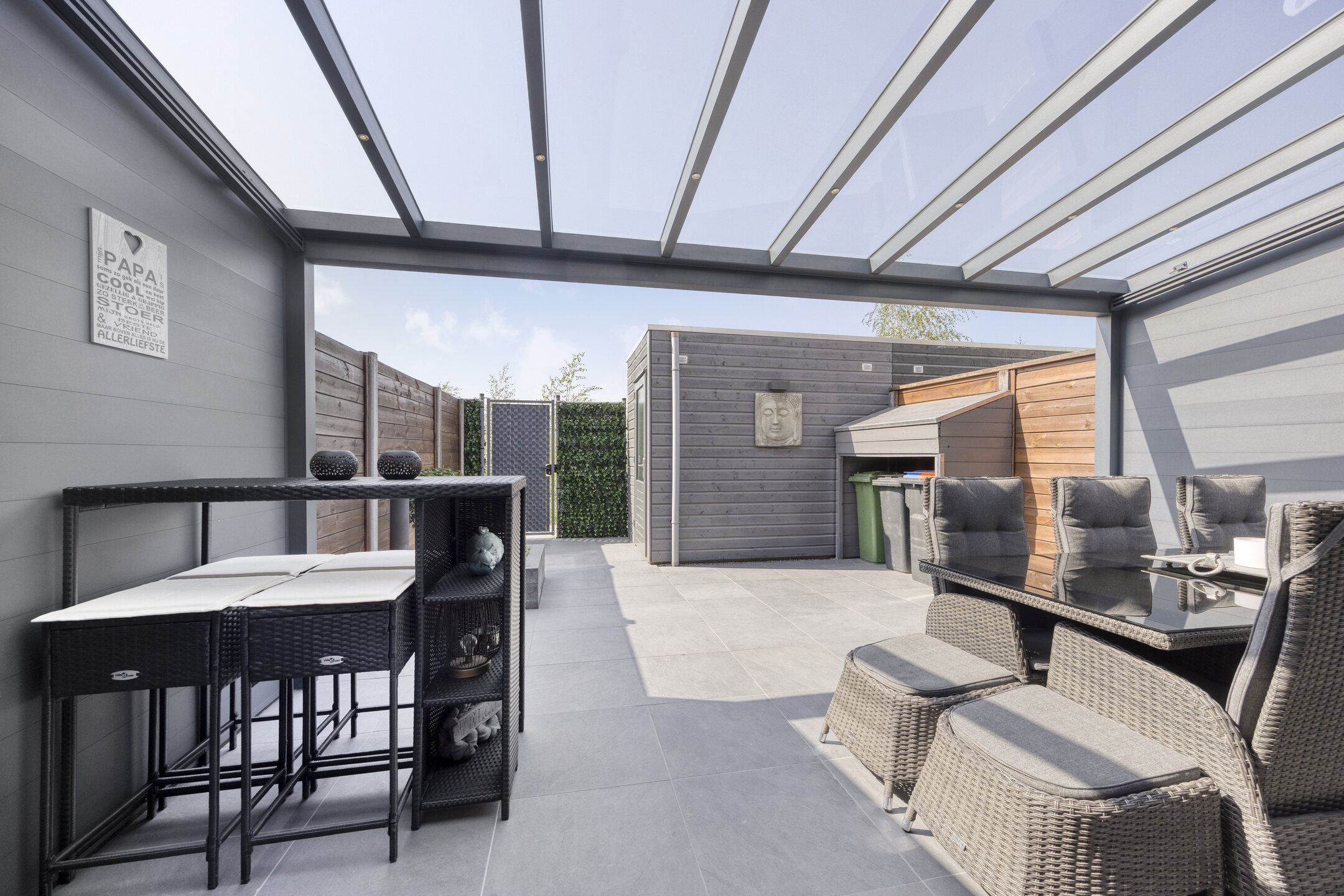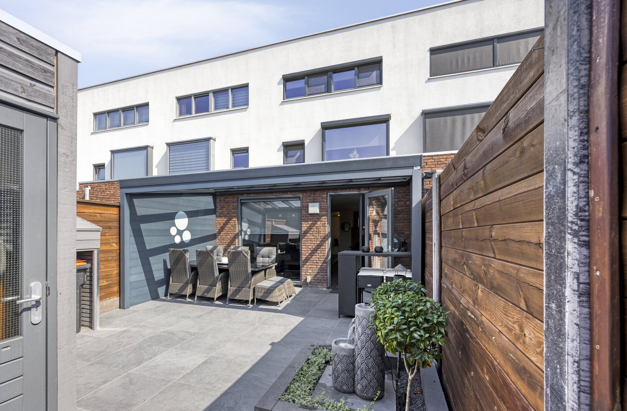 Buitenruimte: Een zonnige tuin aan de achterzijde maakt het geheel compleet. Via de woonkamer bereikt u deze fijne buitenruimte die grotendeels is bestraat, maar ook is voorzien van groen. Dankzij de gunstige ligging geniet u hier van veel zonuren. Het overdekte terras biedt de perfecte plek om buiten te ontspannen, ongeacht het weer. Achterin de tuin vindt u een praktische berging en er is een achterom aanwezig.