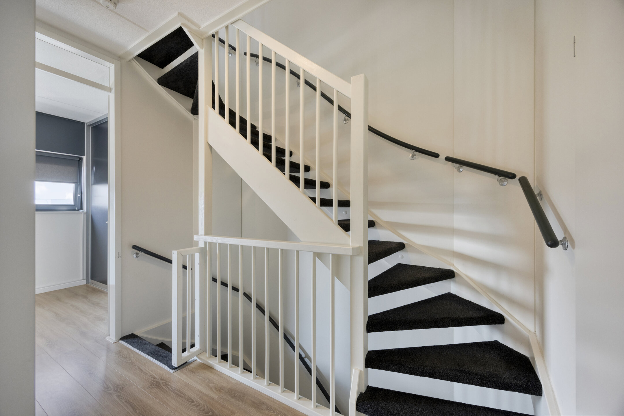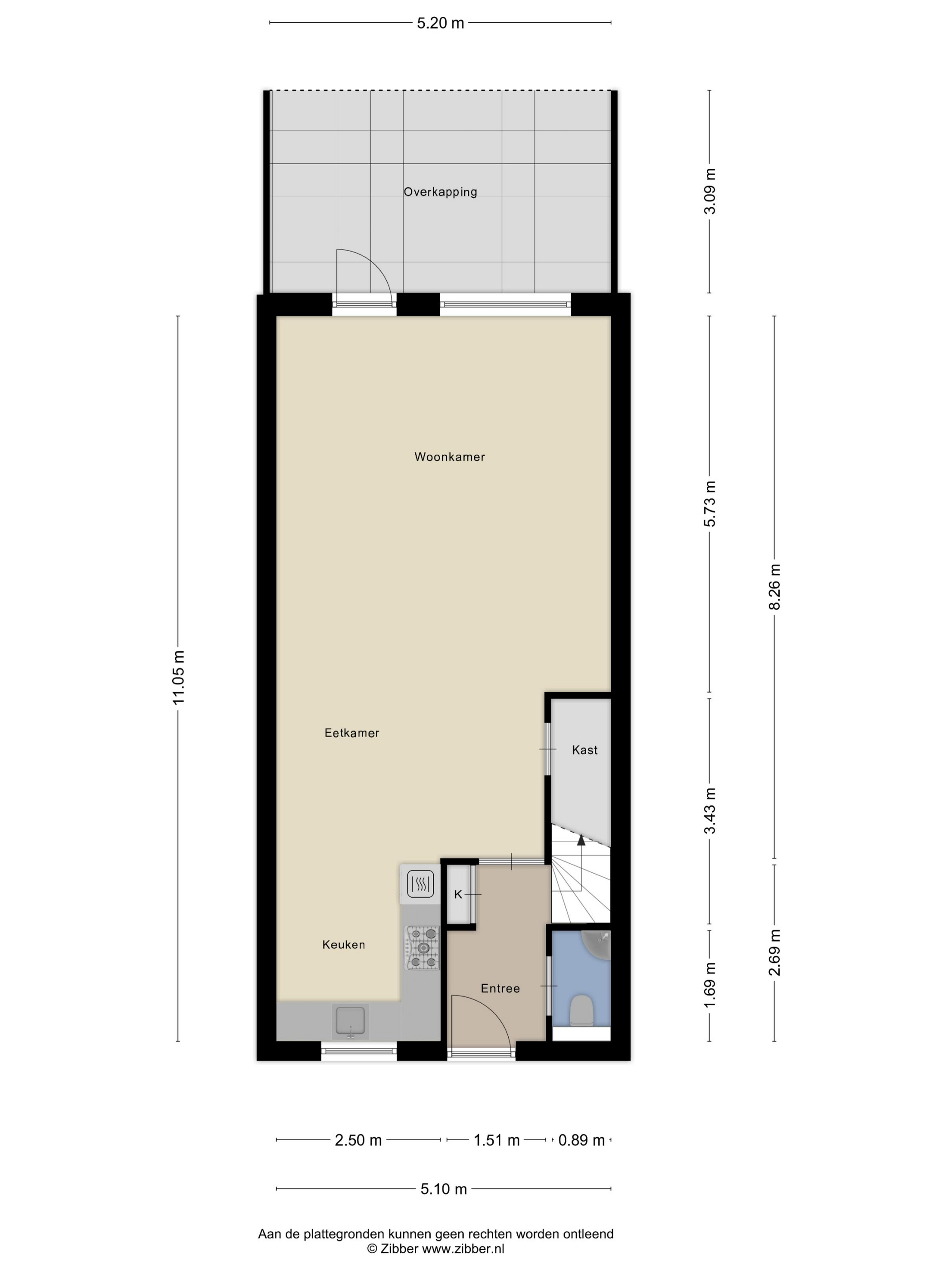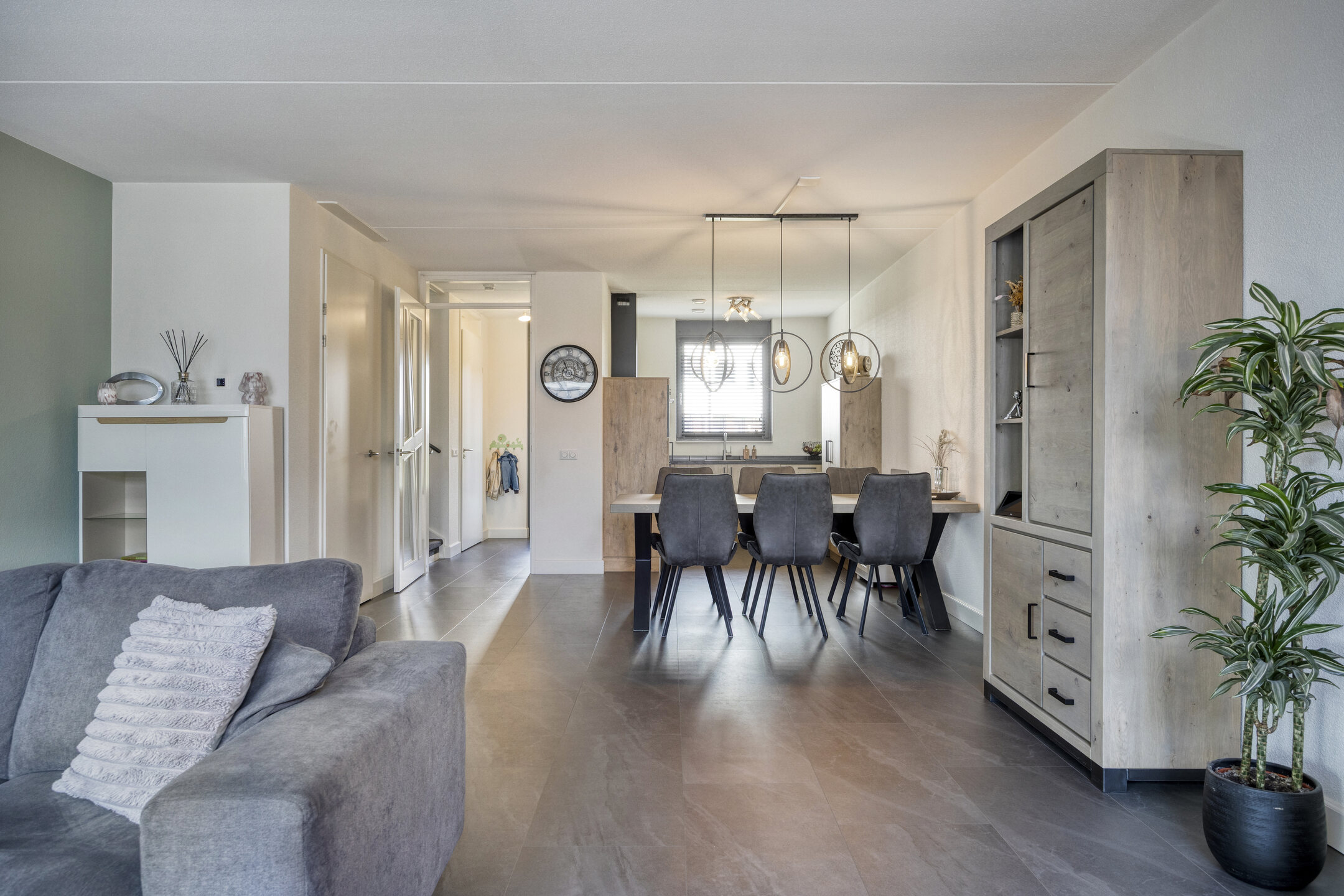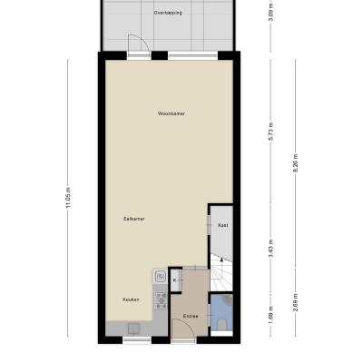 Entree: De entree bevindt zich aan de voorzijde van de woning. Zodra u binnenstapt, wordt u ontvangen in een lichte hal die toegang biedt tot de toiletruimte, de trapopgang naar de eerste verdieping en de woonkamer. Hier is voldoende ruimte voor een kapstok of opbergmeubel, waardoor dit een praktische en nette ontvangsthal vormt.
