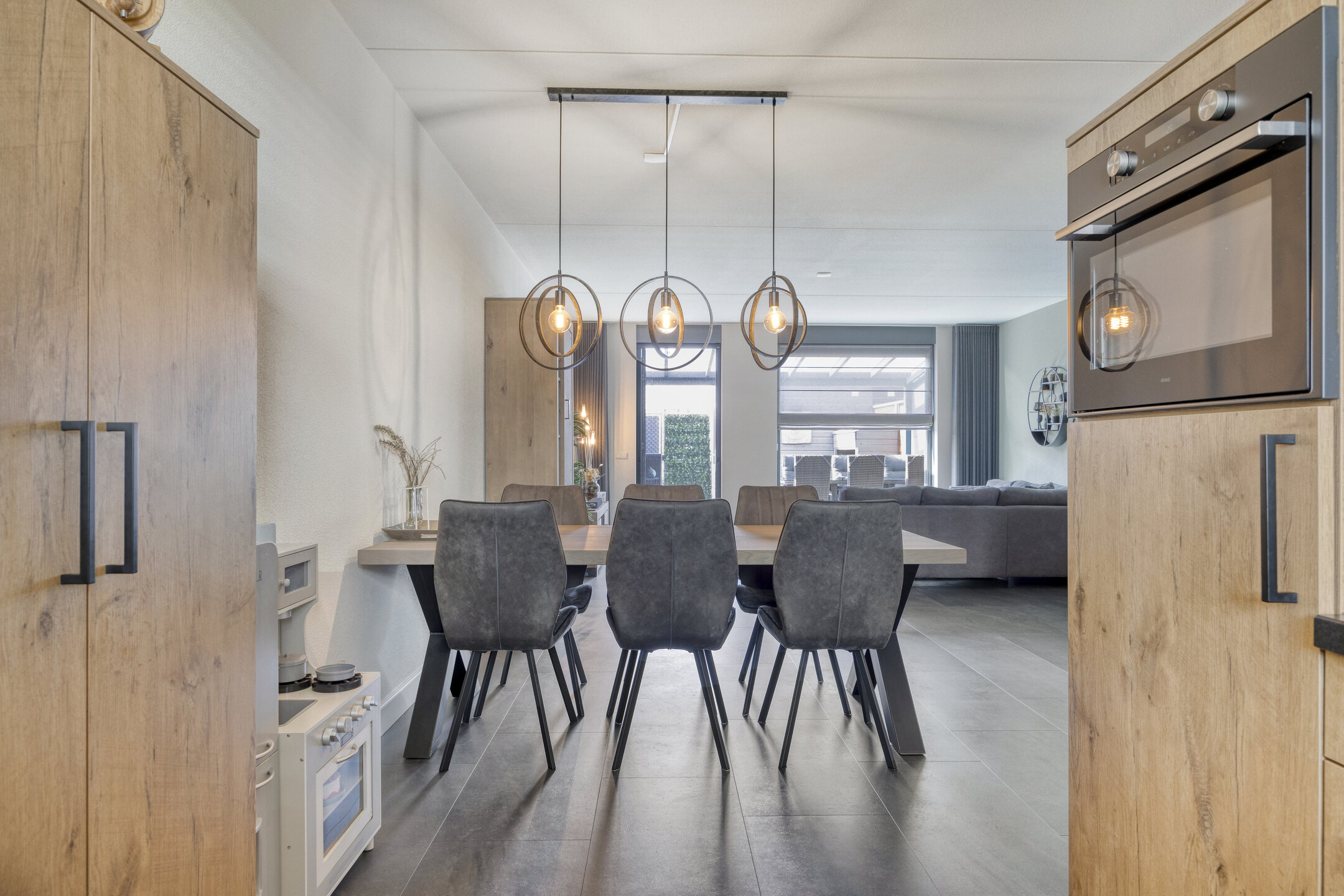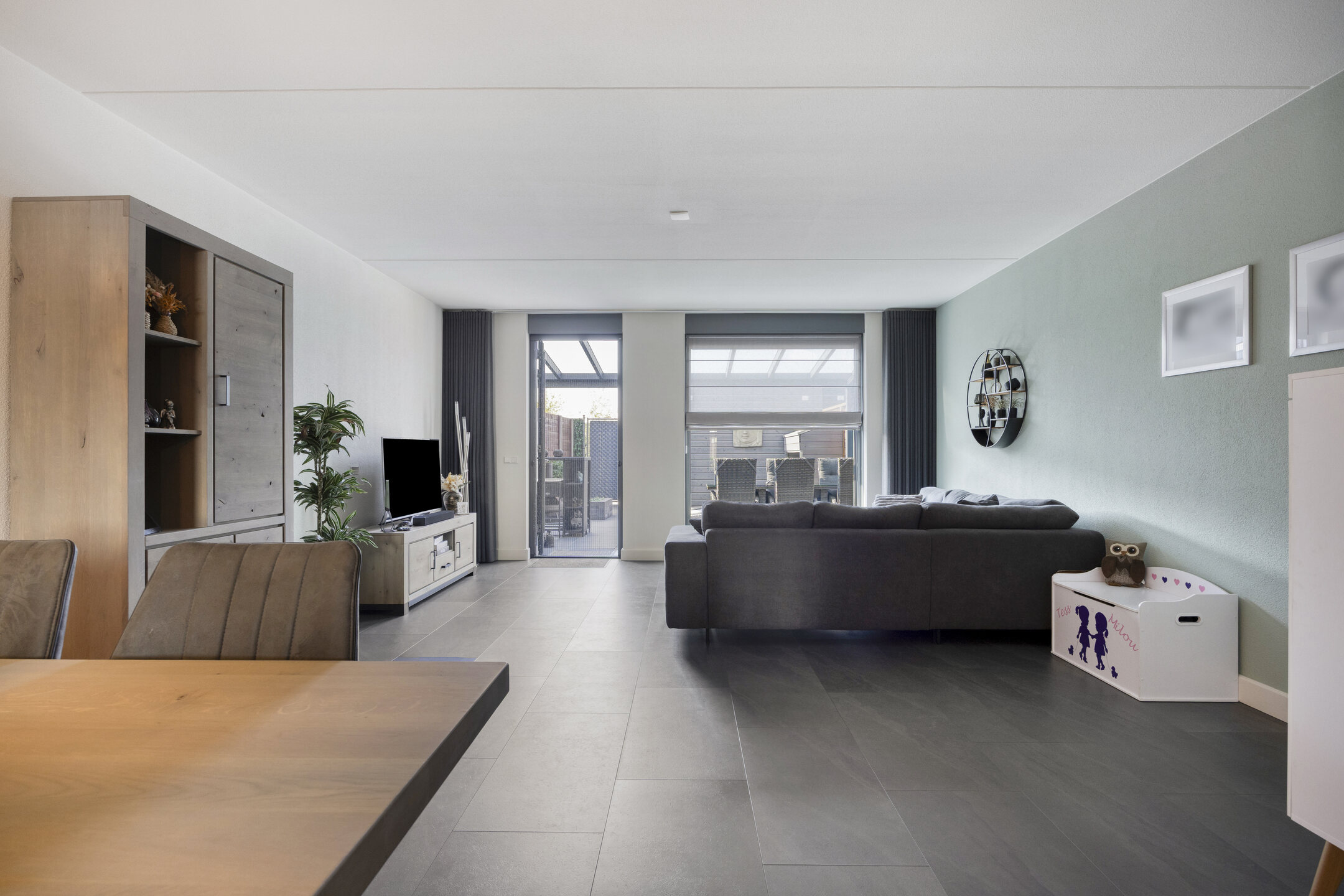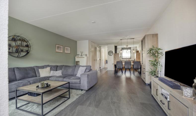 Woonkamer: Een woonkamer die uitnodigt tot ontspannen is het hart van deze woning. De open indeling en de vele ramen zorgen voor een overvloed aan daglicht en een ruimtelijk gevoel. Dankzij de openslaande deur naar de tuin wordt binnen en buiten moeiteloos met elkaar verbonden. De ingebouwde kastruimte biedt daarnaast praktische opbergruimte, terwijl de indeling volop mogelijkheden geeft om zowel een gezellige zithoek als een eetgedeelte te creëren.