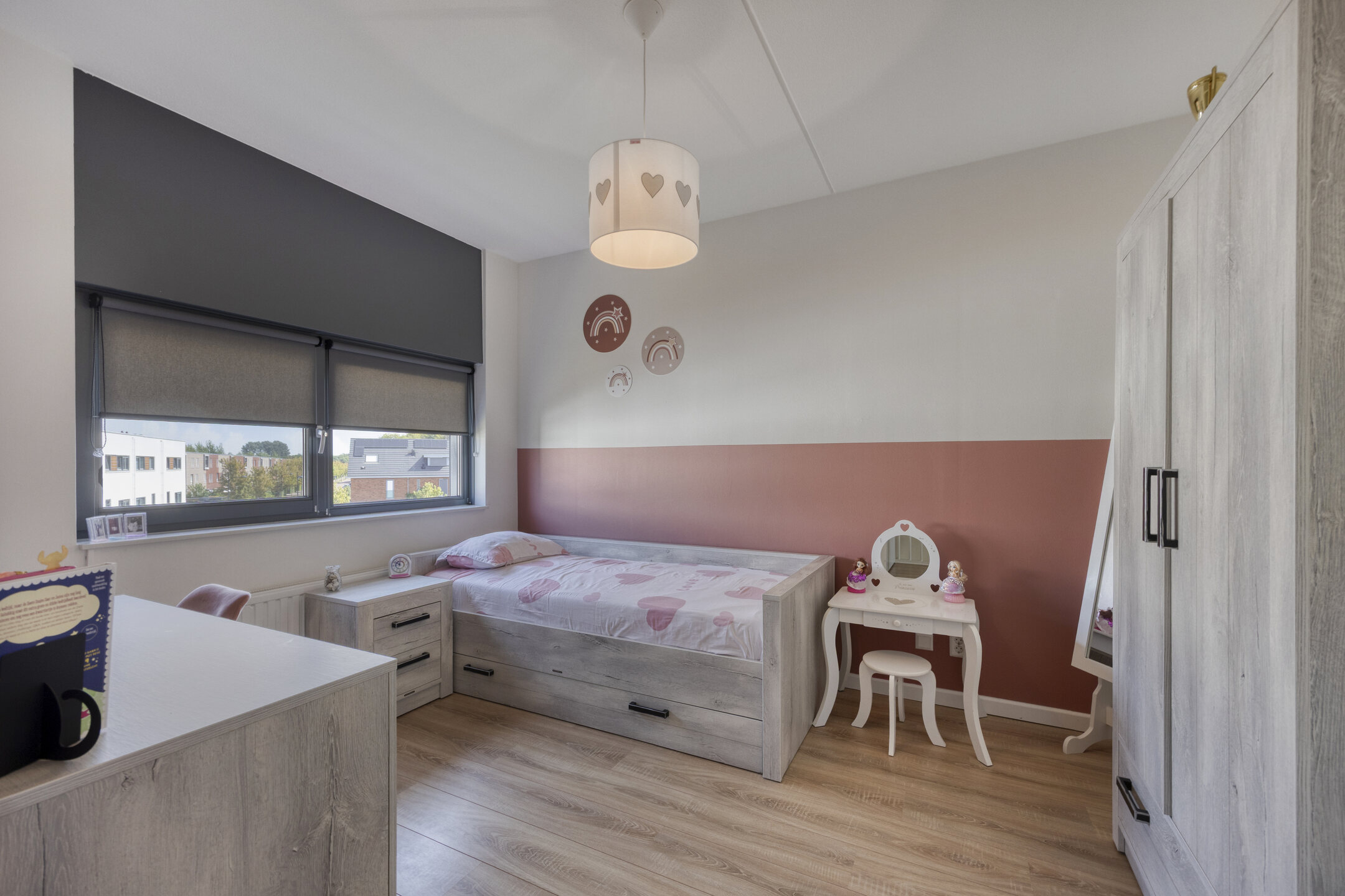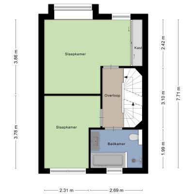 Eerste verdieping: Een vaste trap brengt u naar de eerste verdieping, waar twee ruime slaapkamers en een moderne badkamer zijn gesitueerd. De indeling zorgt voor privacy en comfort, waardoor deze verdieping uitermate geschikt is voor zowel ouders als kinderen.