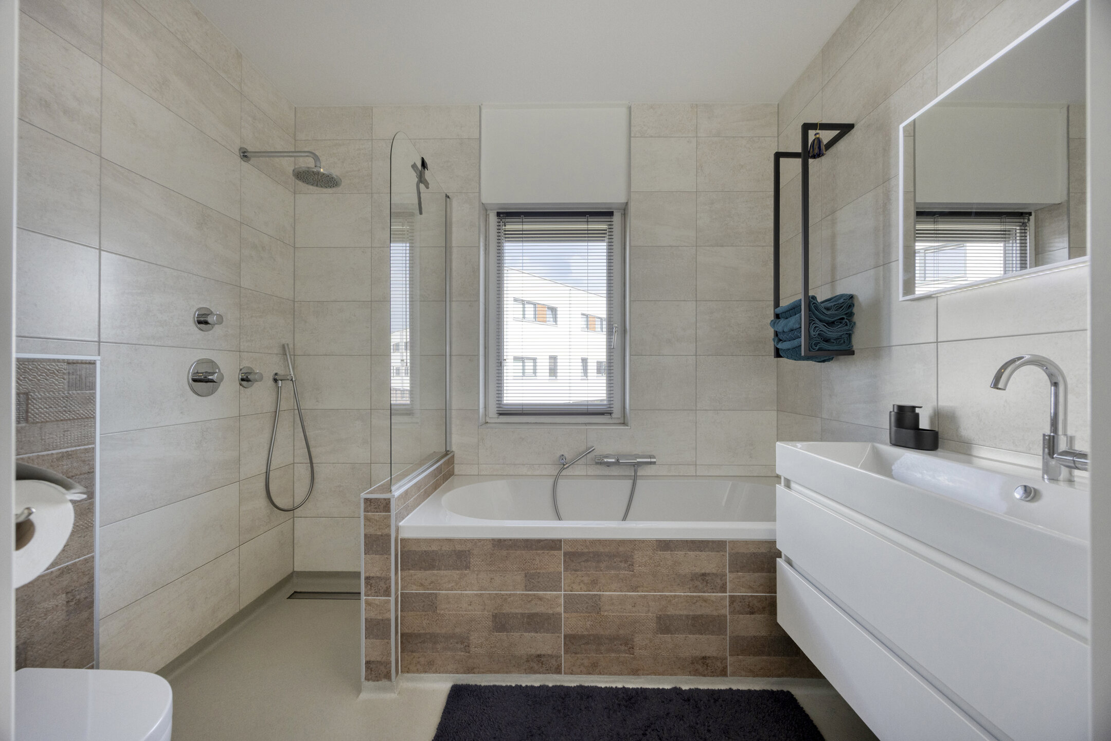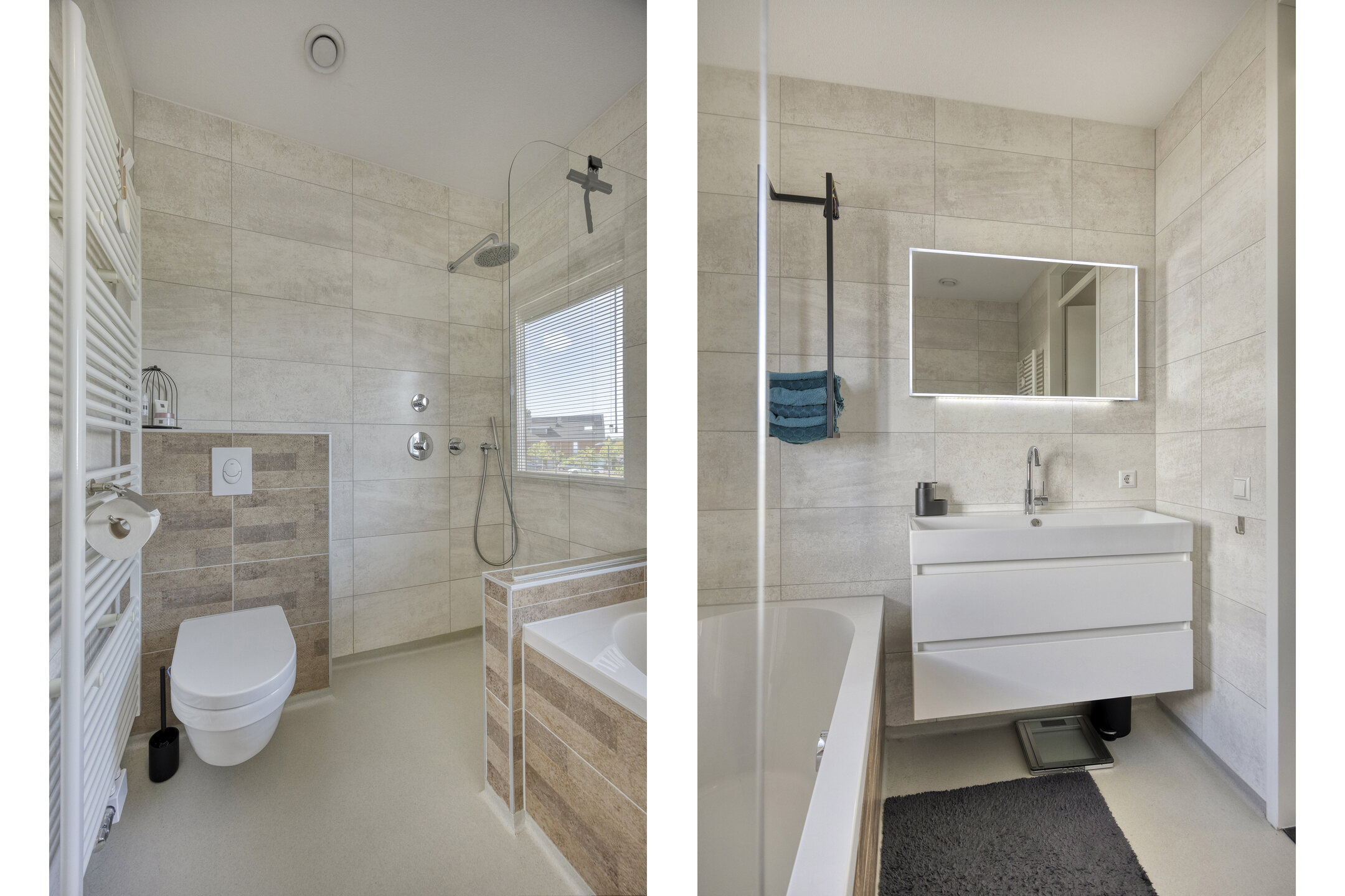 Sanitair: De badkamer completeert deze verdieping en straalt modern comfort uit. De volledig betegelde ruimte is voorzien van een royale inloopdouche, ligbad, zwevend toilet en een wastafel met opbergmeubel. Een handdoekradiator maakt het geheel helemaal af en biedt extra luxe.