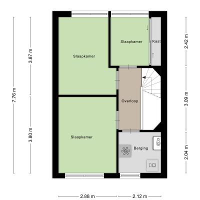Slaapkamers: Twee slaapkamers bieden volop ruimte voor diverse indelingen. Beide kamers zijn groot genoeg voor een bed, bureau of kast, waardoor ze ook uitstekend dienst kunnen doen als werk- of hobbykamer. Eén van de kamers beschikt bovendien over een ingebouwde kastruimte, wat zorgt voor extra gemak.