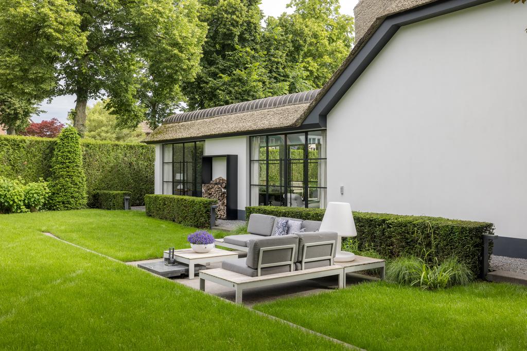 Wie googelt op ‘Rietven 8 in Goirle’ kan een huis op het scherm krijgen dat in geen enkel opzicht lijkt op deze witte villa met rieten kap. De rigoureuze renovatie die dit huis in 2015-2016 onderging, was namelijk grondig en totaal. Vrijwel alleen de buitenmuren bleven staan, terwijl de rest van de woning – inclusief het dak – volledig werd vernieuwd. Het resultaat is een huis dat voldoet aan de hoogste kwaliteitsnormen, met een kunstrieten dak dat niet alleen esthetisch aantrekkelijk is, maar ook praktisch en duurzaam. Met 26 groepen in de meterkast en alle voorbereidingen voor zonnepanelen al getroffen, biedt de woning bovendien mogelijkheden voor verdere upgrades voor wat betreft duurzaamheid.