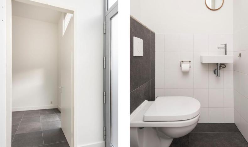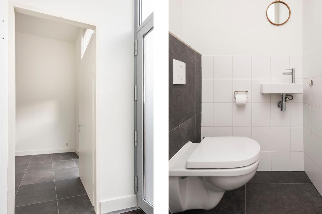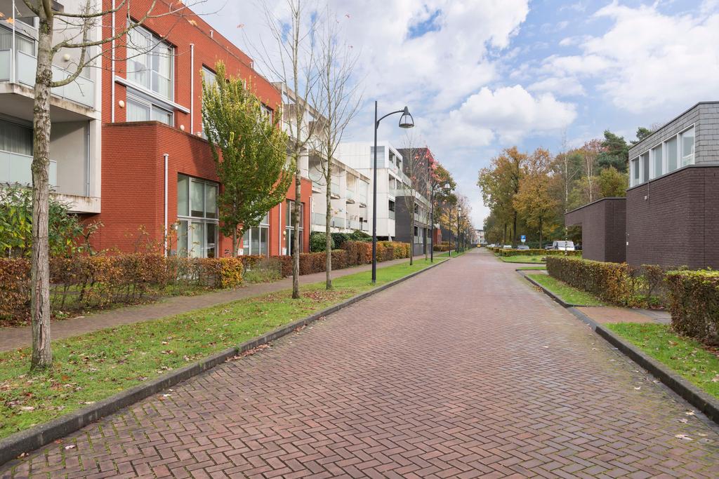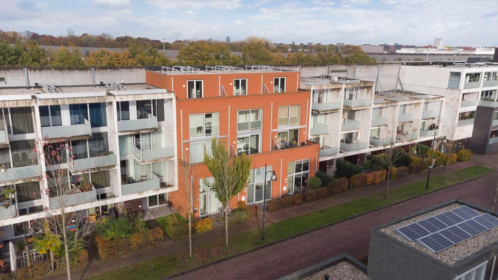 Buiten Tot de woning behoort een bescheiden voortuin met ruimte voor een zitje op de grindbedekking. De eerste en derde verdieping geven toegang tot riante dakterrassen op het zuiden, elk volledig bestraat en voorzien van een stenen balustrade. Via de achterdeur kom je bij de carport aan de achterzijde van de woning waar naast een parkeerplaats ook (overdekte) plek voor fietsen en containers is, zodat deze niet bij de voordeur hoeven te staan in de voortuin.