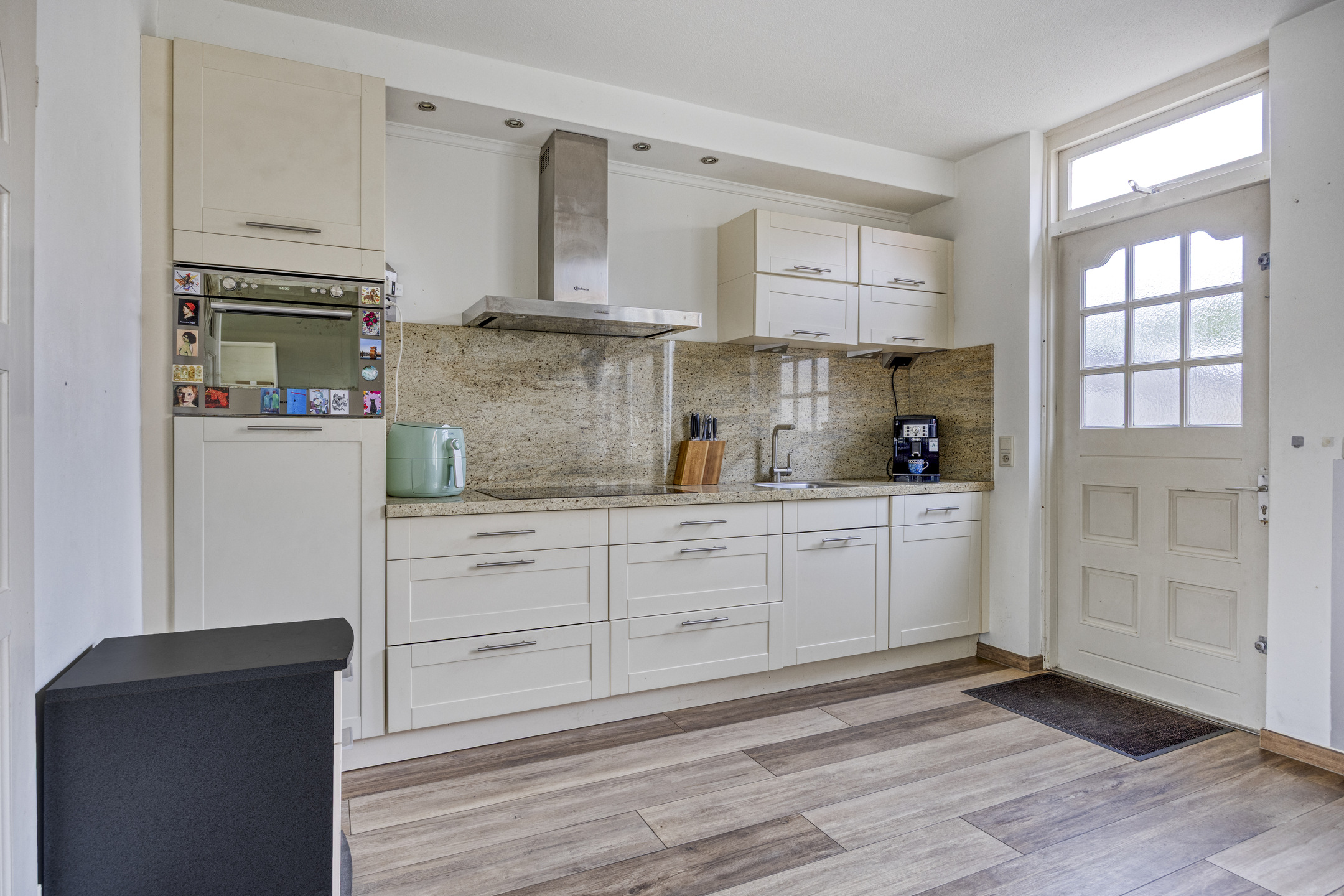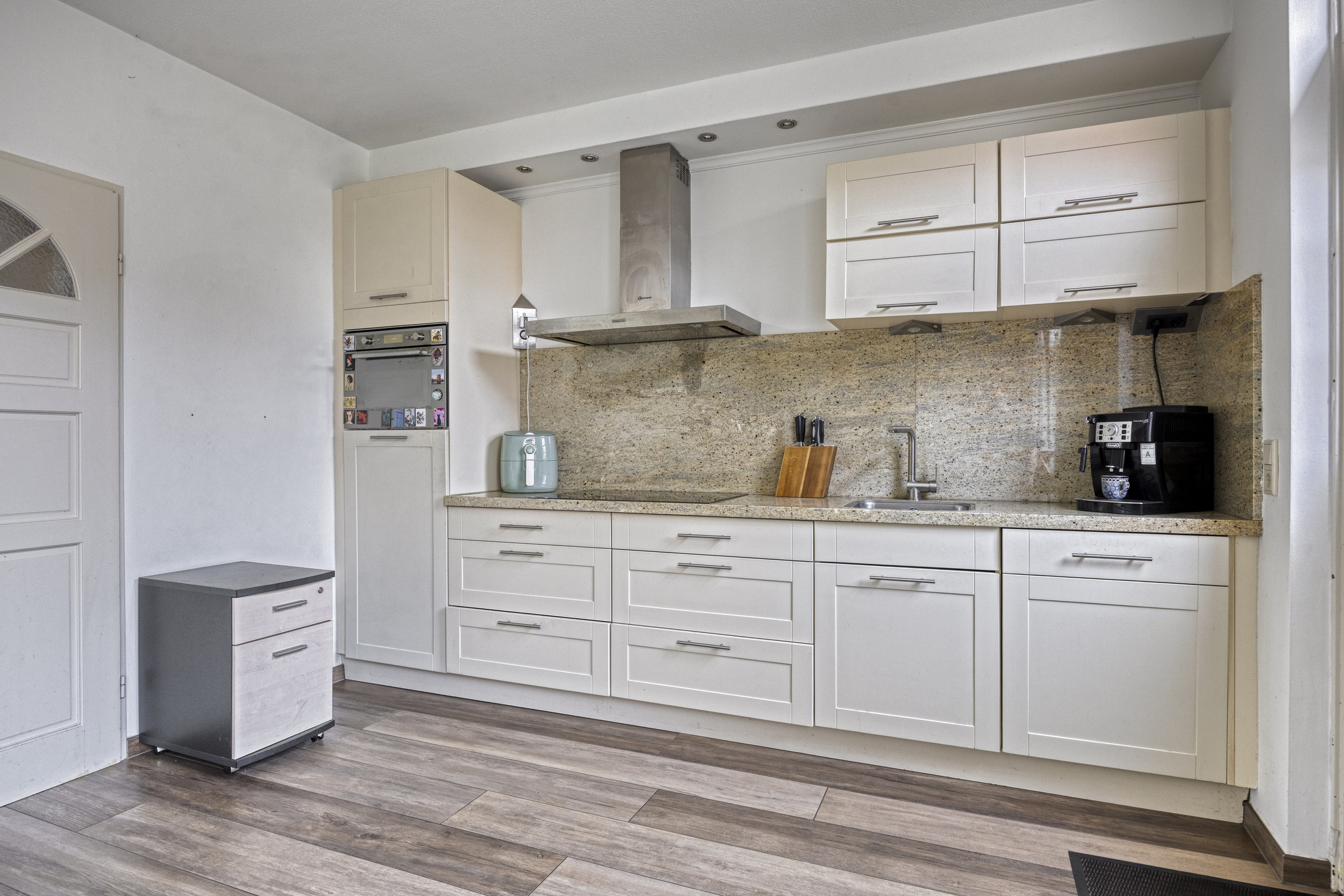 Keuken: Grenzend aan de eetkamer vindt u de open keuken, keurig onderhouden en modern afgewerkt. Hier beschikt u over een langwerpig aanrecht voorzien van een inductiekookplaat, afzuigkap, spoelbak met kraan, ingebouwde ovencombinatie en koelkast. De keuken is functioneel en goed onderhouden, waardoor koken eenvoudig en plezierig wordt.