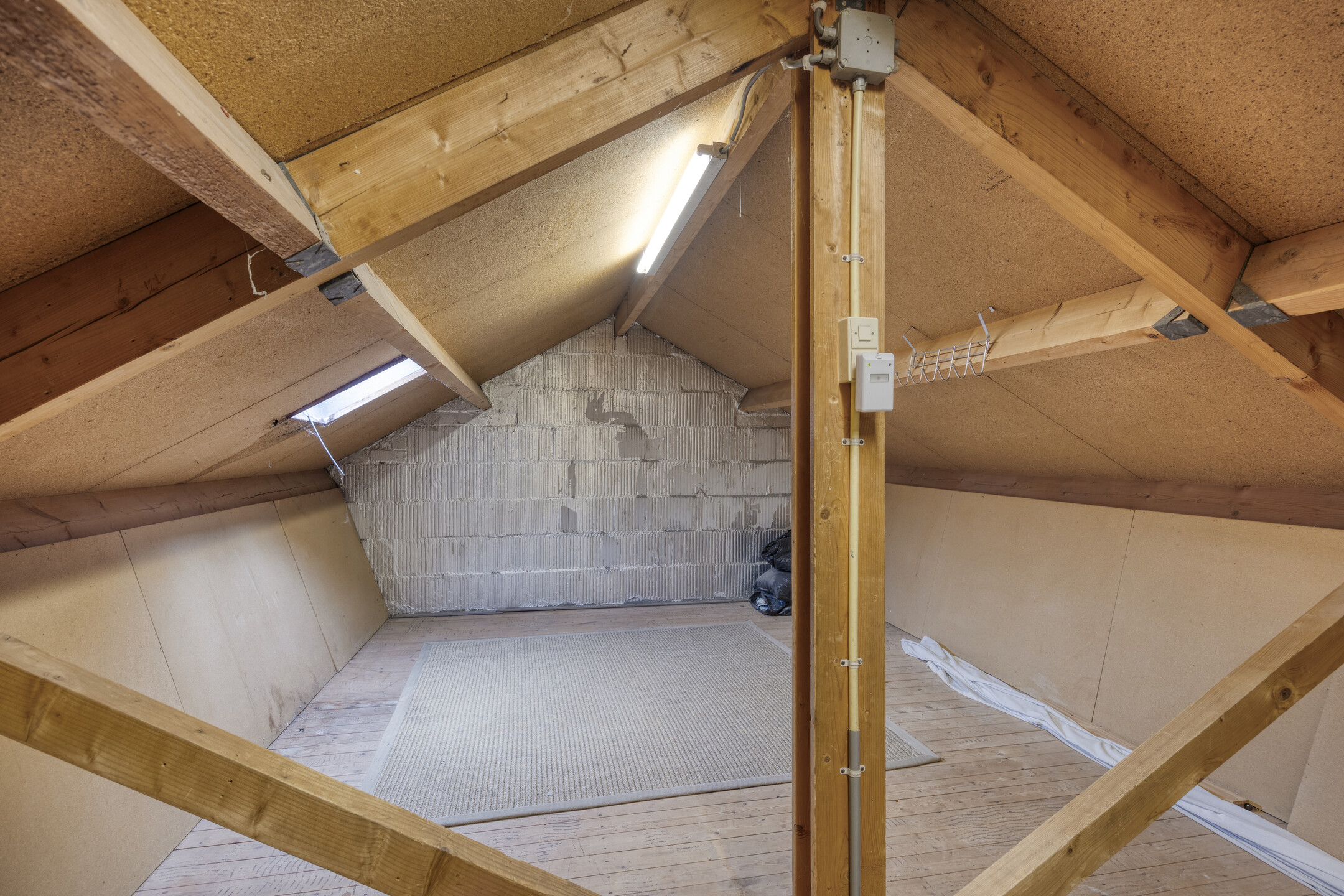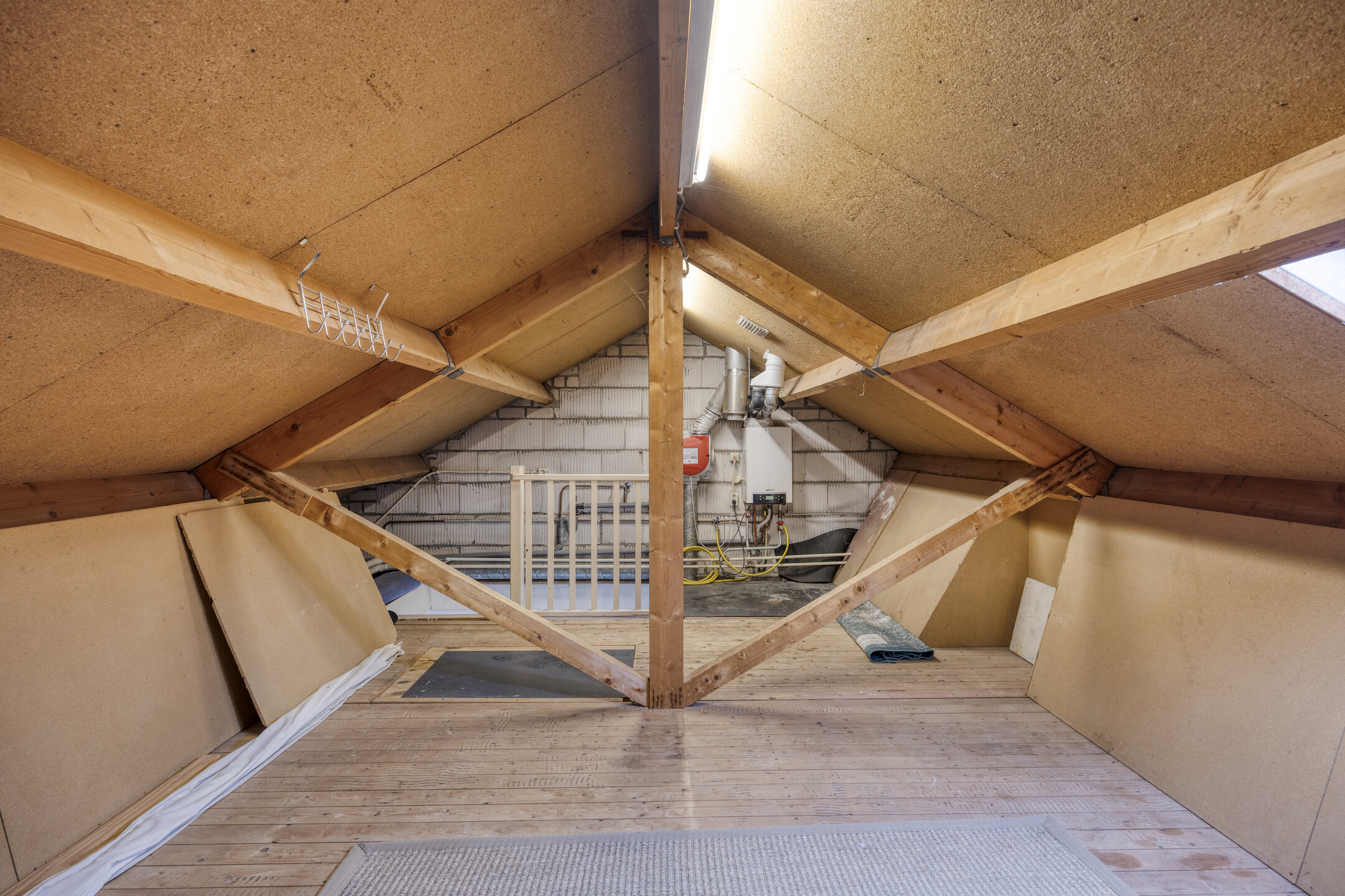 2e verdieping: Middels een vaste trap bereikt u de tweede verdieping, waar een royale zolderruimte aanwezig is. Deze verdieping is ideaal voor opslag of als extra multifunctionele ruimte, volledig naar eigen wens in te richten.