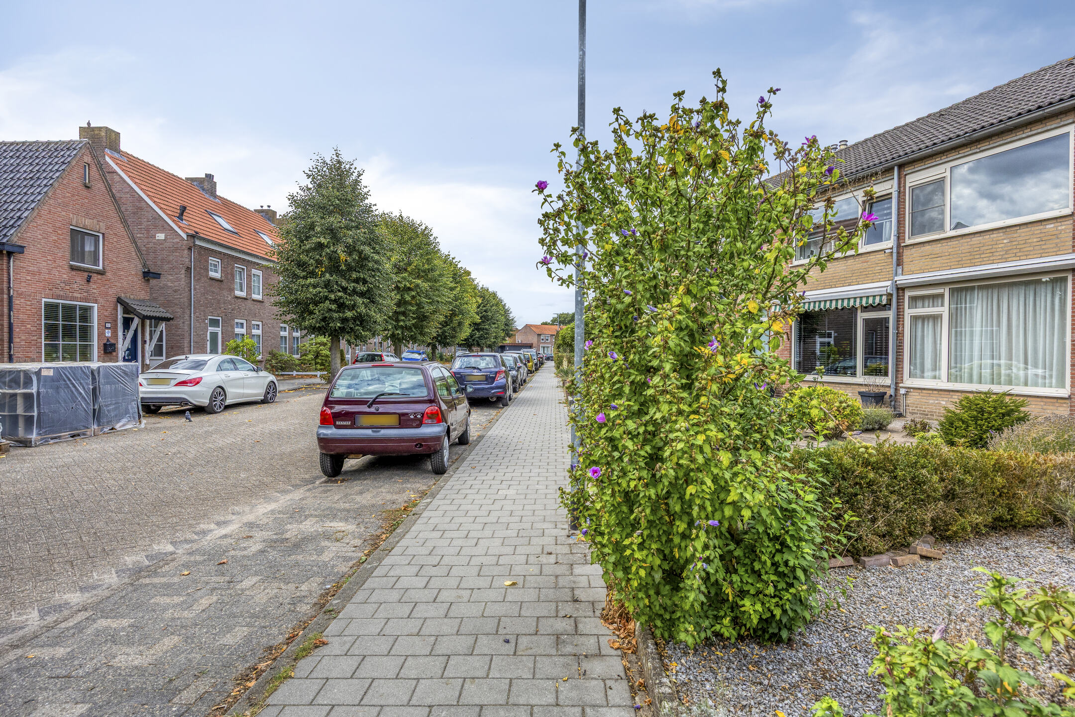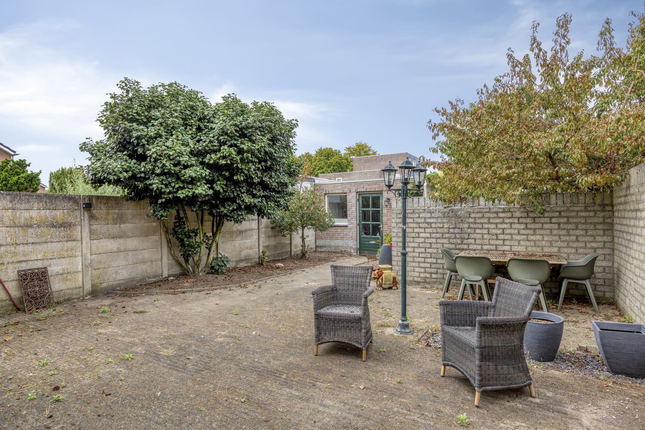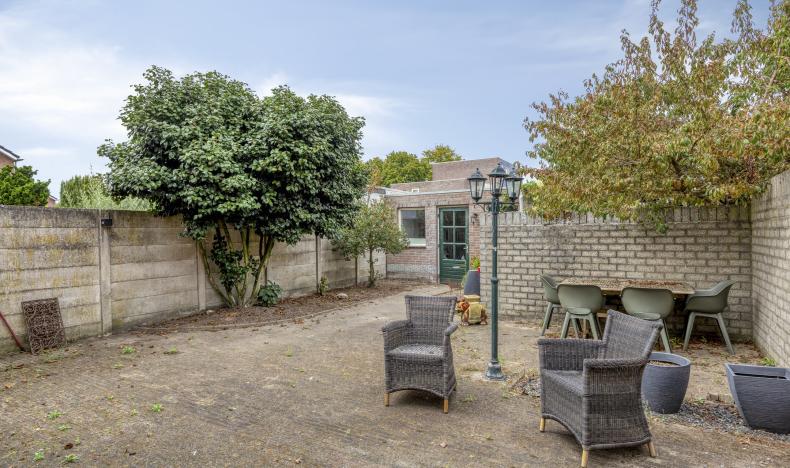 Buitenruimte: De onderhoudsarme achtertuin is toegankelijk vanuit zowel de woonkamer als de keuken. De tuin is grotendeels bestraat met een stukje begroeiing, ideaal voor een terras met plek voor een buitentafel of lounge set. Achterin de tuin bevindt zich een praktische berging, geschikt voor opslag van fietsen, tuinmaterialen of andere spullen.