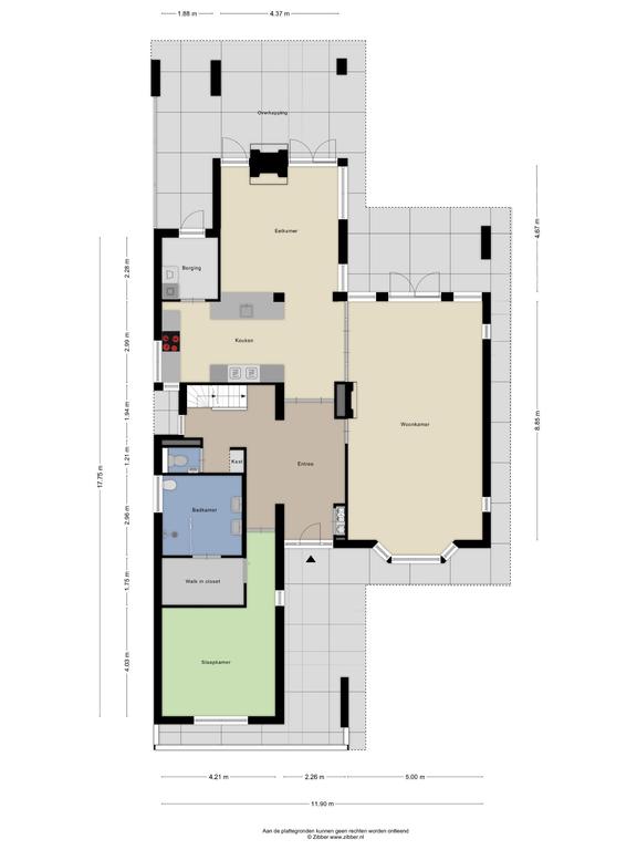 Inpandige garage en kantoorruimte of slaapkamer op de begane grond