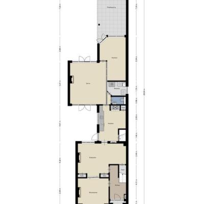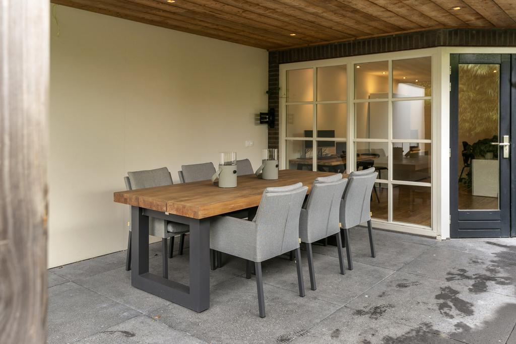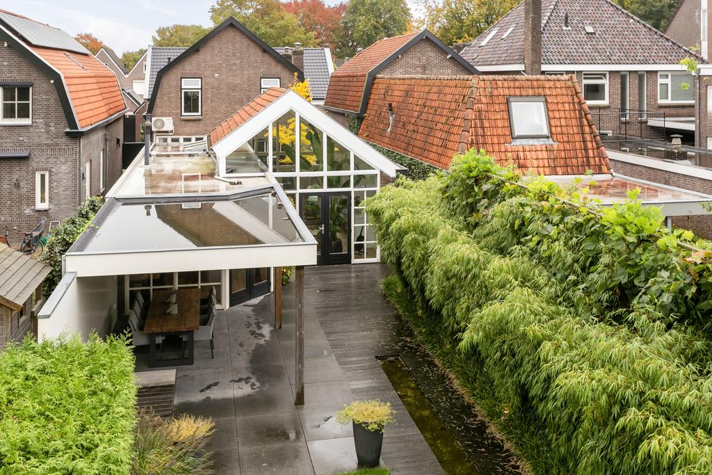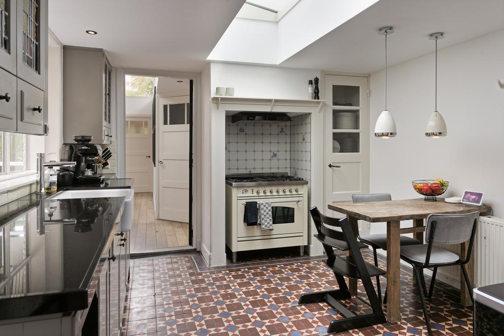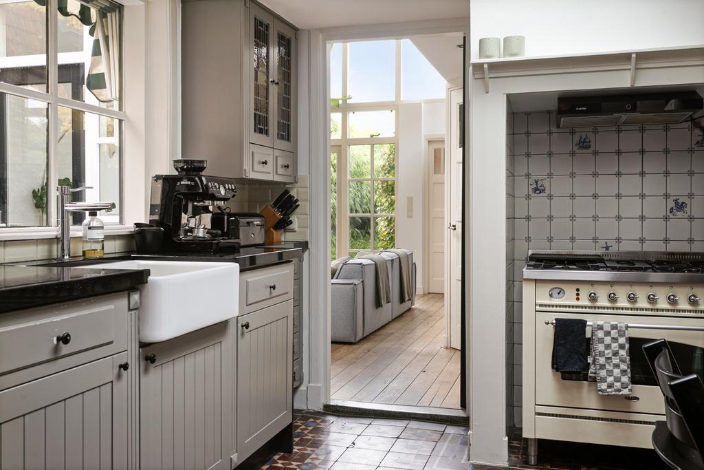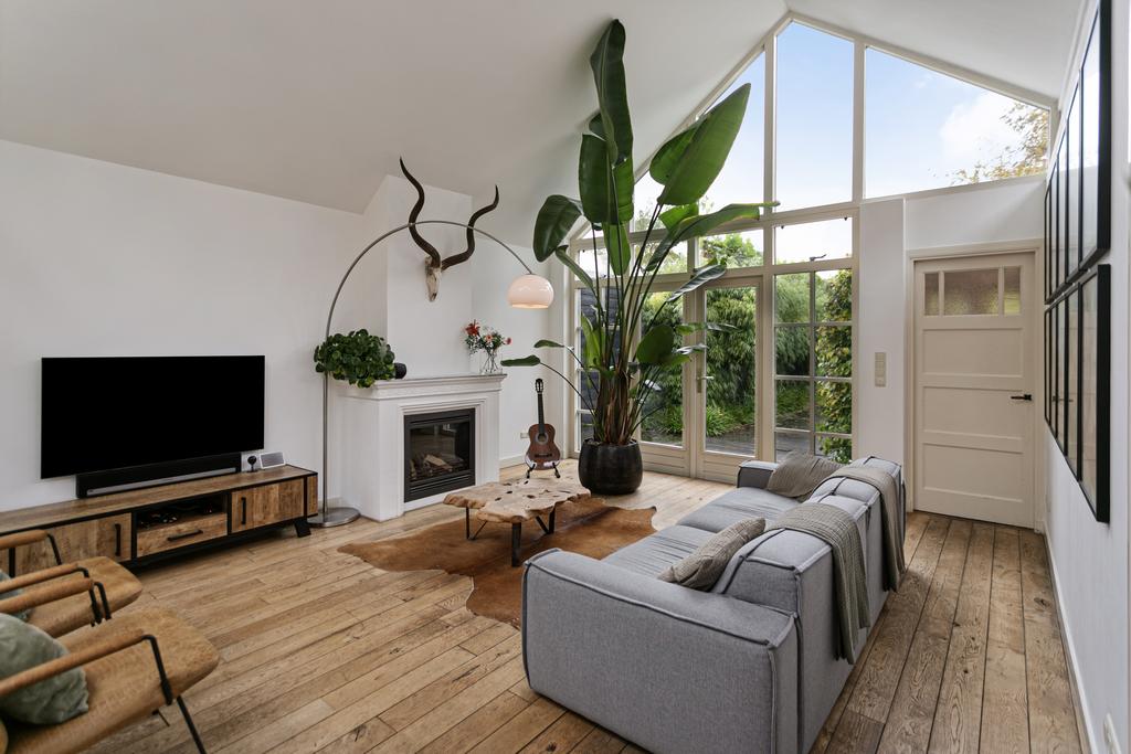 De royale keuken is een harmonie tussen oud en nieuw, met een prachtige authentieke tegelvloer en een modern keukenmeubel met een granieten werkblad. Hier vindt u alles wat u nodig heeft, zoals een stoomoven, koelkast, vaatwasser, een nisje voor het fornuis met oven en afzuigkap, en tevens toegang tot de kelderruimte en een bergkast. Via een mooie taatsdeur bereikt u de tuinkamer. De prachtige tuinkamer is royaal, en overgoten met licht door de prachtige glazen gevel. Waar de hoge nok extra ruimte toevoegt, zorgt de houten vloer voor een warme sfeer. Breng hier rustgevende momenten door terwijl u geniet van het zicht op de tuin en de gezelligheid van de sfeerhaard. Aan beiden zijden vindt u openslaande tuindeuren, waarmee u buiten naar binnen haalt. De airconditioning zorgt voor de nodige verkoeling, en de kantoorruimte is vanuit de tuinkamer bereikbaar. Het royale kantoor op de begane grond, met een grote raampartij en openslaande deuren naar de tuin, is uw perfecte werkplek.