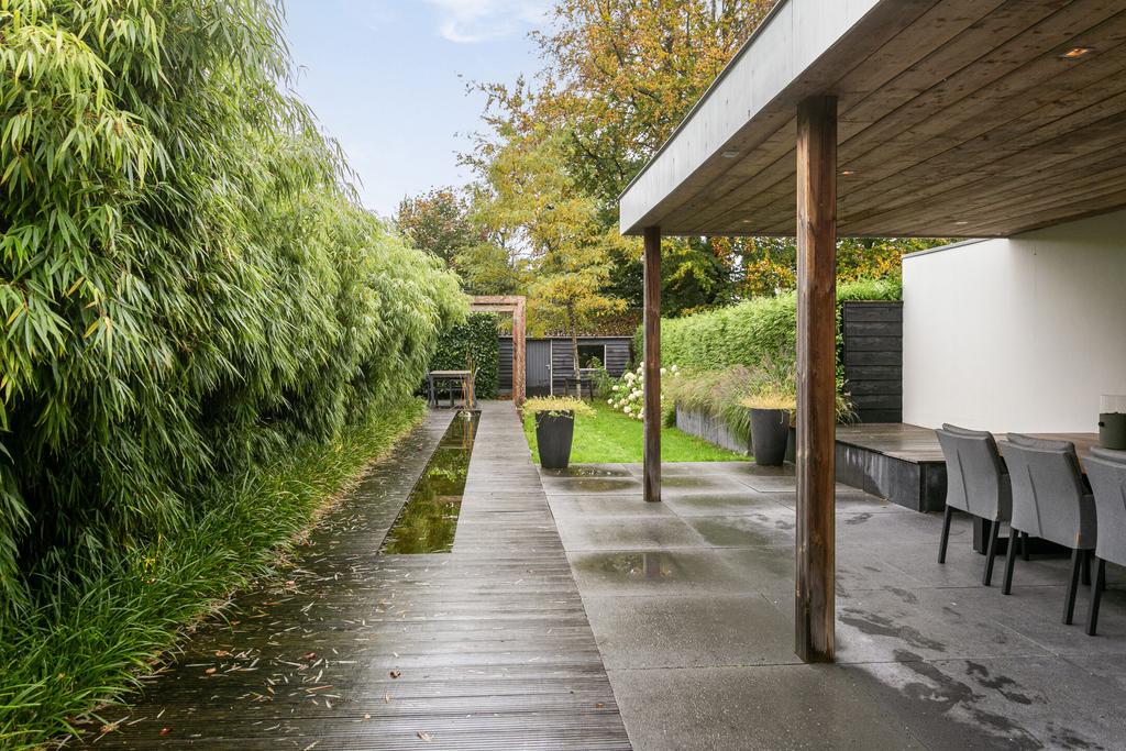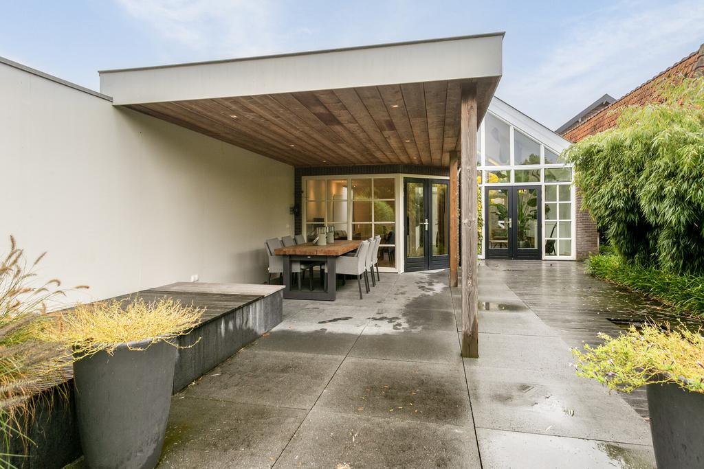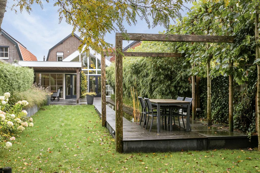 Buiten geniet u van de prachtige diepe groenrijke tuin, mooi aangelegd met beplante en verhoogde borders. Er is ook een grote overkapping en een verhoogd terras, met waterpartij, voor die ideale zomerdagen en -avonden. Daarnaast beschikt u over een riante houten berging, parkeergelegenheid op eigen terrein en een dubbele poort richting de voorzijde van de woning. Tussen de woning en de aangebouwde tuinkamer vindt u een sfeervolle patio. Ook bij de tuinkamerkunt u genieten van een aangename buitenplaats. Er is een stuk grond beschikbaar, wat is aangekocht door de huidige bewoners aan de achterzijde van de tuin. Op deze grond heeft u de mogelijk voor het bouwen van een garage.