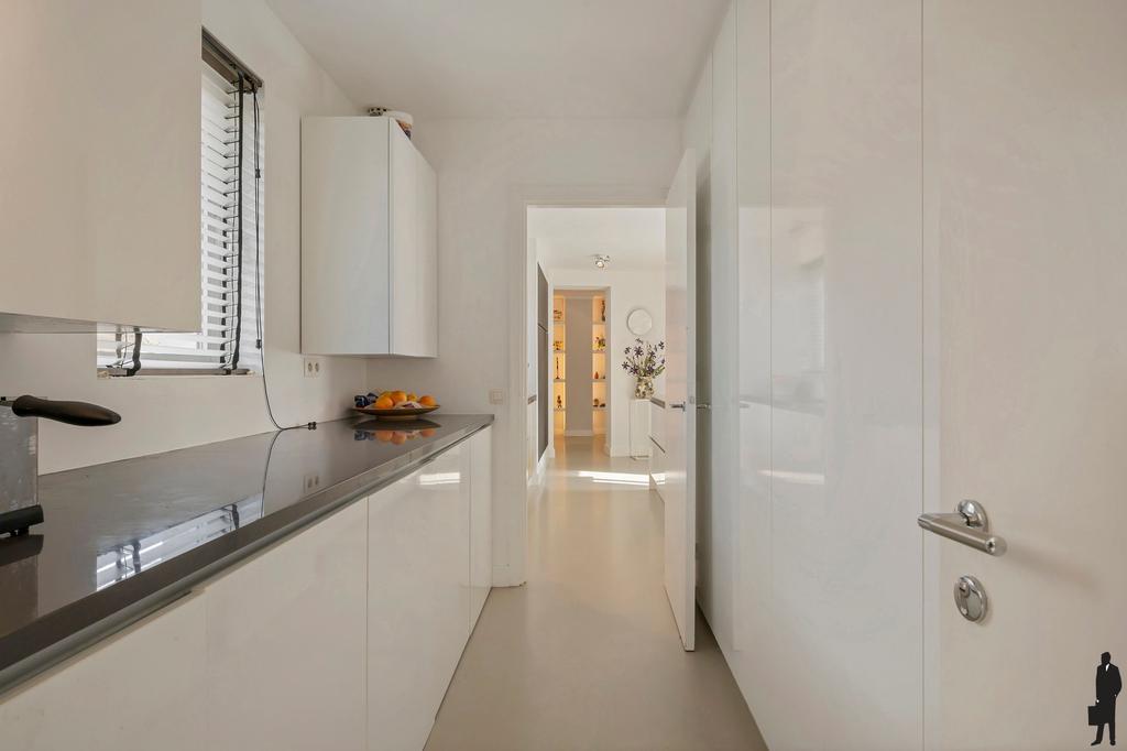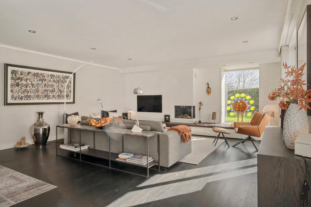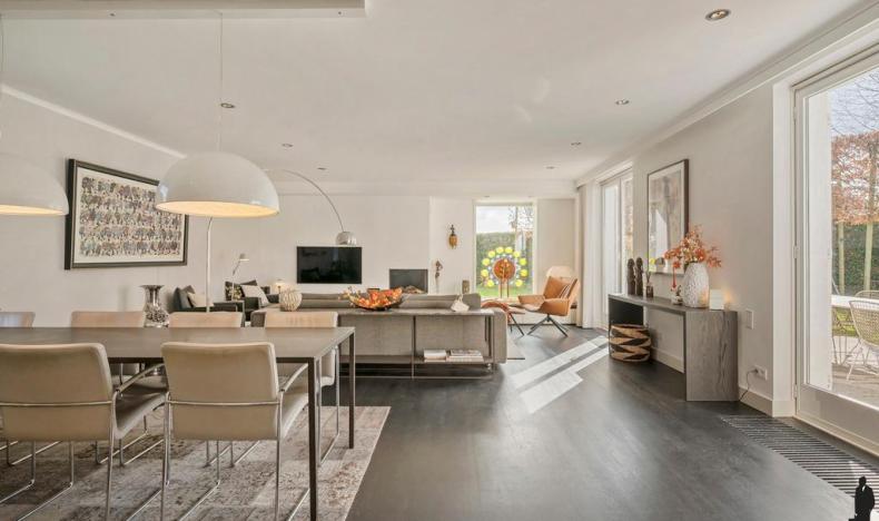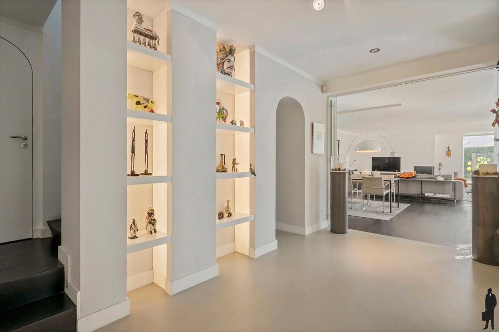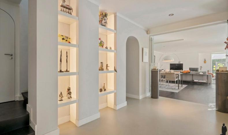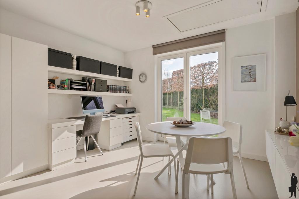 U betreedt de woning via de riante entree met vestiaire en apart gasten toilet. Vanuit de inkomhal heeft u toegang tot de lichte woonkamer voorzien van open haard en deuren naar de tuin. De ruime keuken is voorzien van een kookeiland en heeft de nodige inbouwapparatuur en inbouwkasten. Vanuit de keuken heeft u toegang tot de bijkeuken en die geeft weer toegang tot de de tweede woonkamer/kantoor ( voormalige garage) aansluitend aan deze ruimte is er nog een slaapkamer met eigen badkamer.