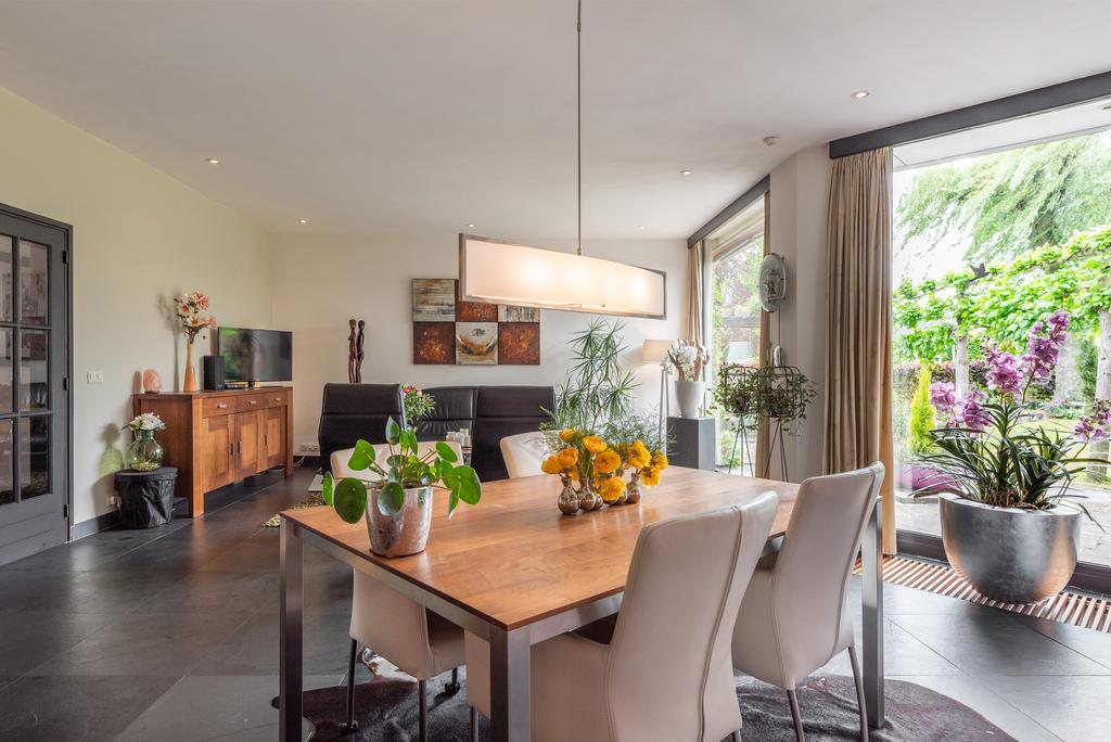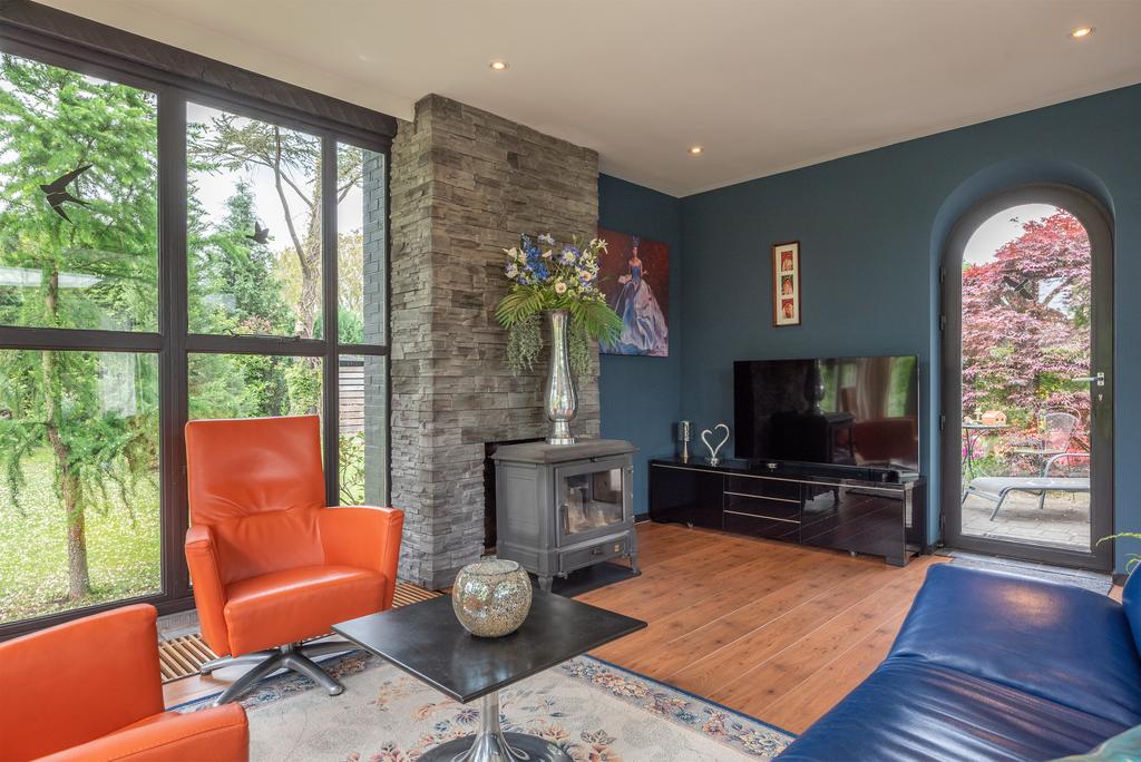 U betreedt de woning via de riante hal op natuurstenen vloer met toilet. Vanuit de hal heeft u toegang tot de ruime leefruimte die van veel natuurlijk daglicht geniet door de raampartijen. Geweldig uitzicht in eigen tuin. De semi open keuken houdt contact met de leefruimte en is voorzien van de nodige inbouwtoestellen en handige inbouwkasten. De gezellige tuinkamer/zithoek is voorzien van een houtkachel en via de schuifdeuren heeft u toegang tot het gezellig overdekt terras.