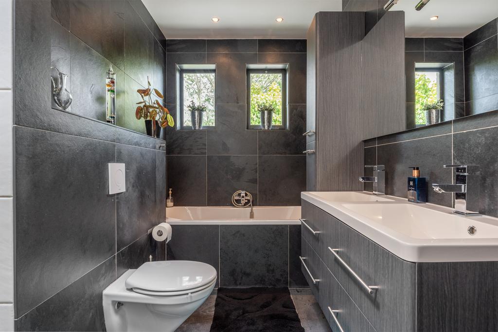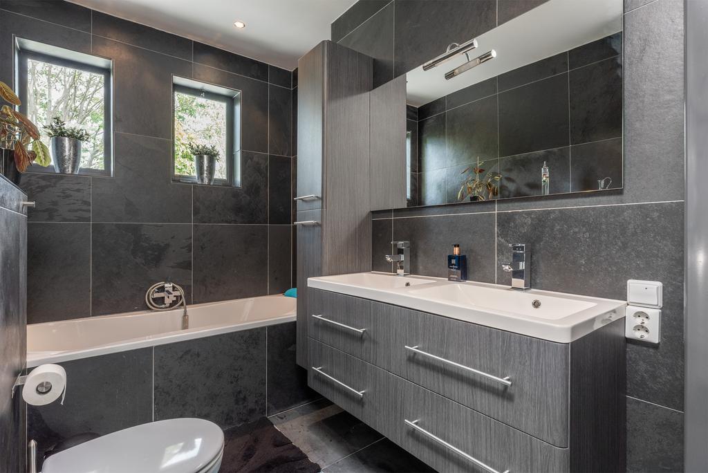 Links van de hal brengt de gang u naar de badkamer met inloop regendouche, ligbad, dubbele wastafel en toilet. Voor de rest zijn er 3 slaapkamers van ca. 23,8m² , 14,1m² en 7,5m² . De ruime inpandige garage van ca. 34,5m² is voorzien van dubbele elektrische poort en biedt zeer veel opbergruimte.