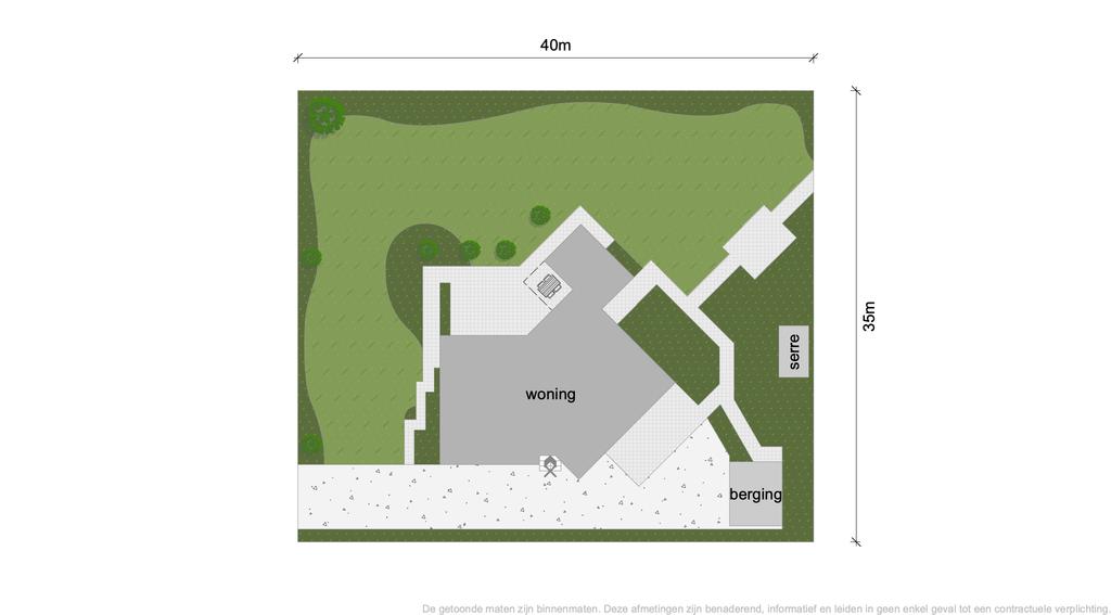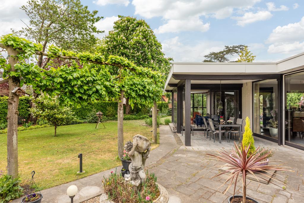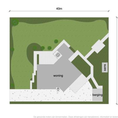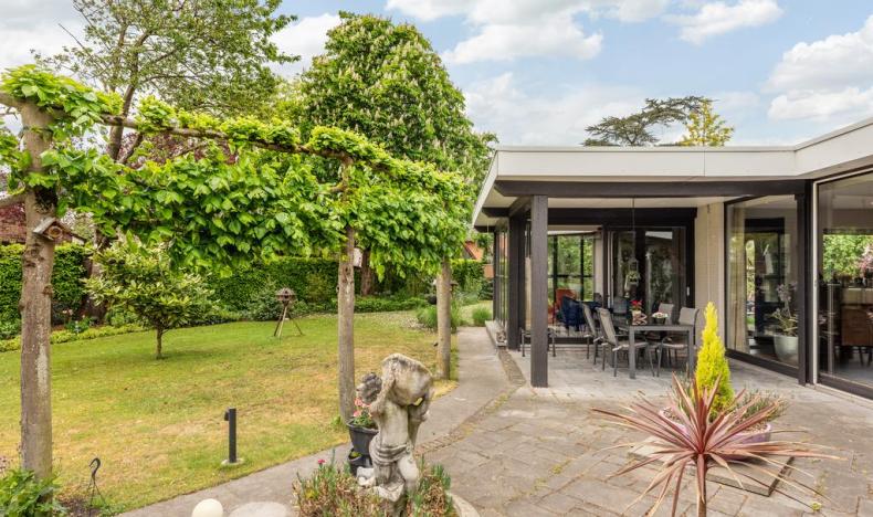De tuin is mooi aangelegd en u geniet van volledige privacy. De tuin is ideaal georiënteerd op het zuidwesten. Aan de woning is een gezellig overdekt terras voorzien en door de tuin zijn verschillende terrassen voorzien. Verder is er nog een ruim tuinhuis voorzien en een serre.