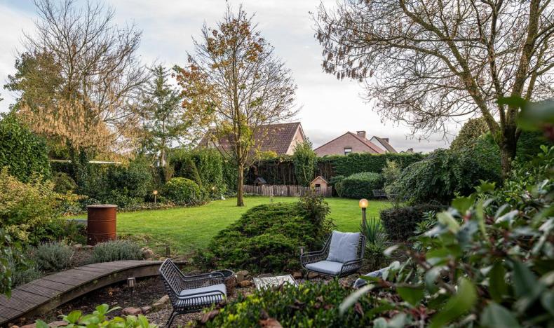 De mooi aangelegde tuin is volledig omheind en voorzien van een gezellig terras (met elec. luifel) aan de woning. De tuin is ideaal georiënteerd op het zuiden.