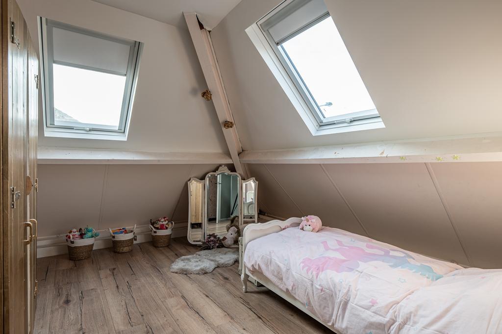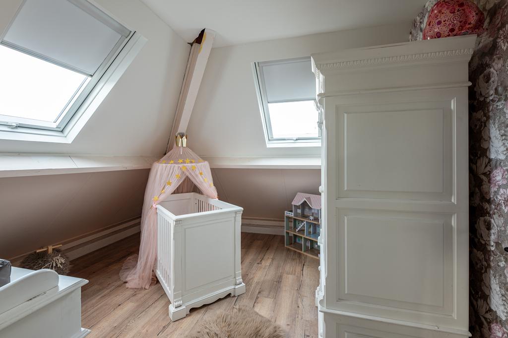 De vaste trap in de hal brengt u naar de eerste verdieping. Hier bevinden zich 3 slaapkamers van ca. 30,14m², 13,09m² en 13,09m² . De ruimte van de master bedroom biedt veel mogelijkheden waardoor er indien gewenst eenvoudig een inloopkast gemaakt kan worden.