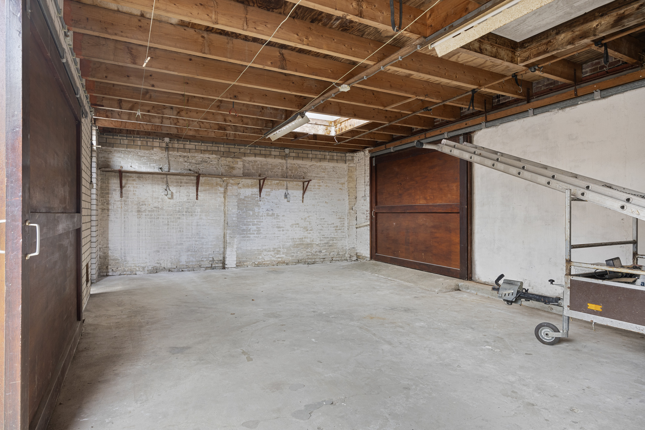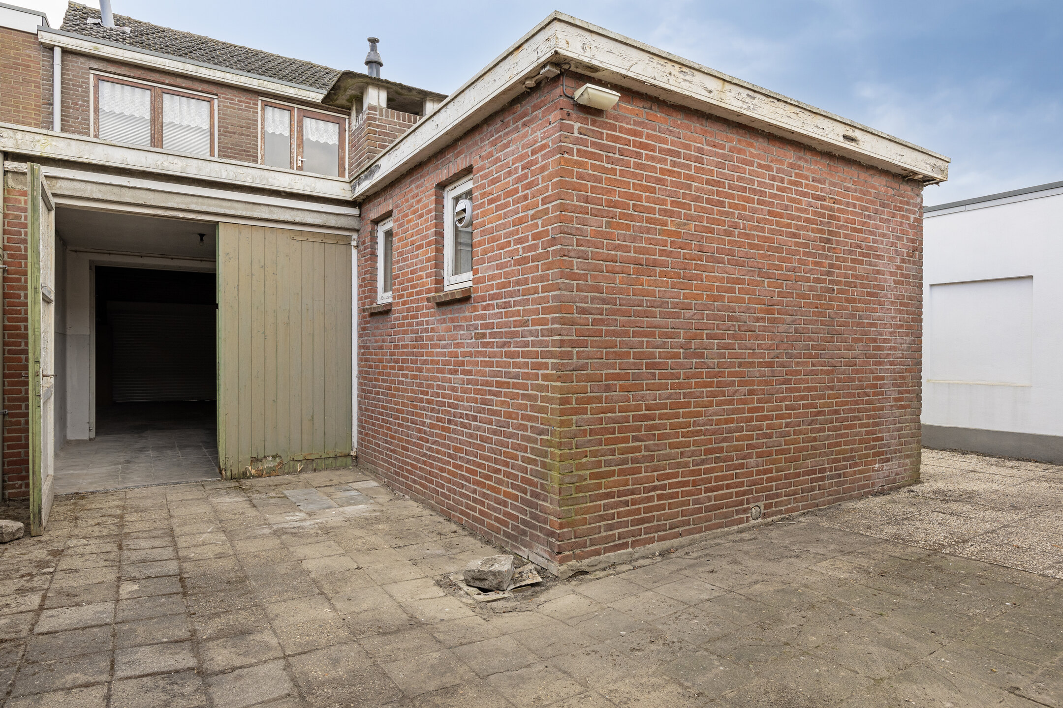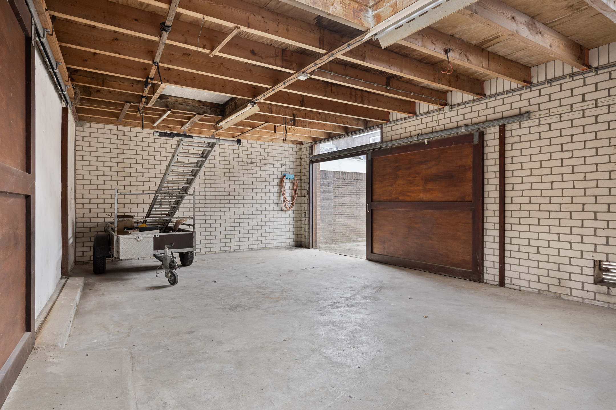 Aan de voorzijde heeft de garage een overheaddeur en een separate loopdeur. De inpandige garage bied doorgang naar de royale garage/werkplaats aan de achterzijde, ideaal voor de hobbyist of ondernemer. De garages zijn ruim opgezet en heeft een garagepoort aan de voorzijde, en aan de acherzijde zijn er openslaande deuren die naar de achtergelegen straat leiden. Hierdoor is de garage ook uitstekend bereikbaar met een auto of bus.